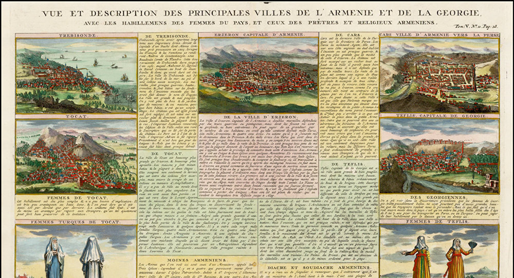 Известный французский картограф, ученый и писатель Анри Шателен (Henri Chatelain) совместно с Николасом Гуендевилем (Nicolas Gueudeville) издал в 1705-1720 гг. в Париже и Амстердаме семитомный монументальный труд на французском языке под названием «Исторический атлас или Новое введение в историю, хронологию и древнюю и новую географию» (Atlas Historique, Ou Nouvelle Introduction A l'Histoire, à la Chronologie & à la Géographie Ancienne & Moderne). Впоследствии "Исторический атлас", считавшийся краткой географической и исторической энциклопедией того времени, не раз переиздавался. В одном из томов "Исторического атласа", вышедшем в свет в 1710 году, есть отдельная страница под названием "Виды и описания главных городов Армении и Грузии" (Vue et Description Des Principales Villes De L'Armenie et De La Georgie Avec). На этой странице представлены картографические изображения и описание городов Армении и Грузии. Интересно, что даже не имевшая государственности Армения воспринималась и приз