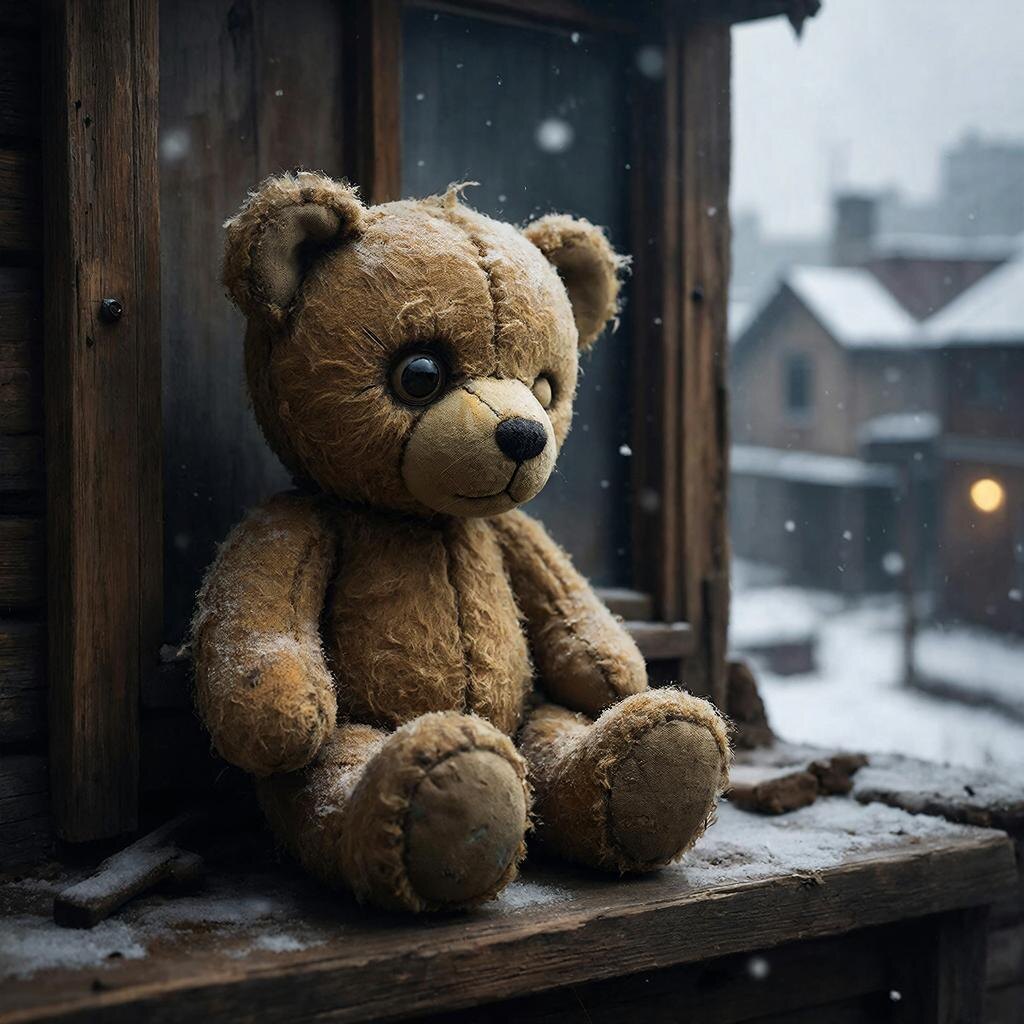 Затем чемодан, переезды, суета. И вот медведь уже лежит в коробке на антресолях, в темноте, из которой доносятся лишь приглушенные голоса новой жизни. Его забыли. Но он не обижался. Он хранил в каждом стежке, в каждой пылинке, забившейся в швы, какое-то детское, абсолютное счастье и ту любовь, что когда-то наполняла комнату светом.