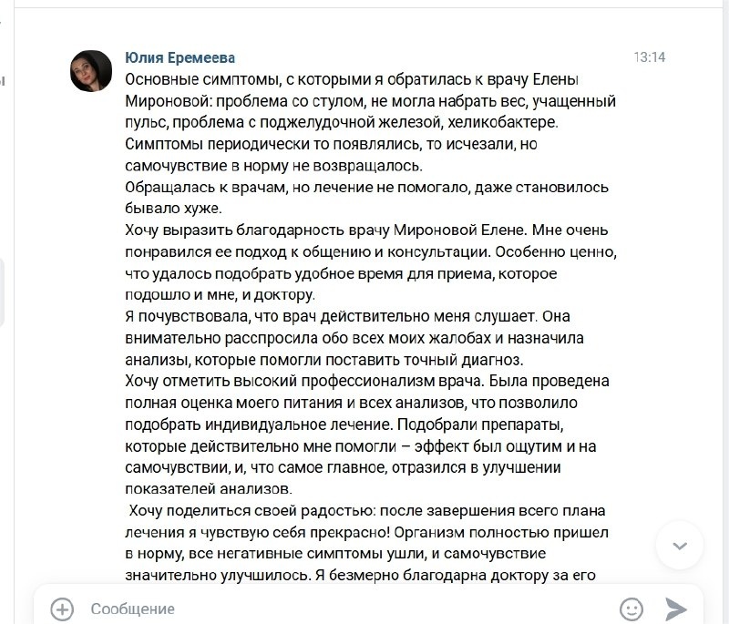 Думаю комментарии излишни, очень подробно описано. На самом деле работу мы завершили еще перед новым годом, только руки дошли до него. Пожелаем Юлии ЗДОРОВЬЯ!!! Оставить заявку на консультацию по разбору ваших симптомов и разработки стратегии восстановления работы ЖКТ можно по ссылке gastroenterolog-mironova.ru