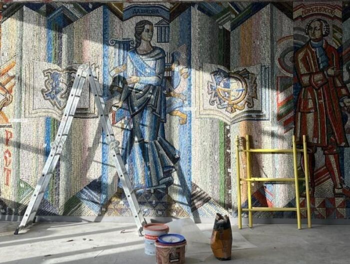 Историческое мозаичное панно отреставрировано в ГПНТБ СО РАН в Новосибирске. Планируется, что оно откроется на этой неделе. https://academ.info/news/istoriya/49695/