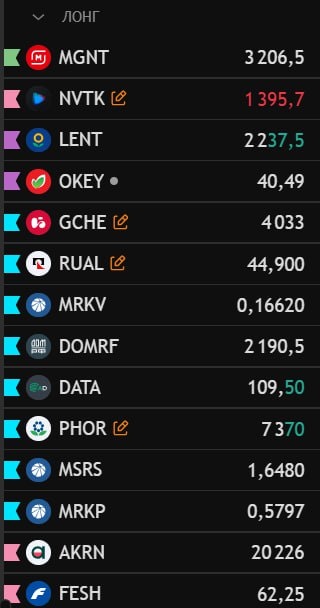 Не берем во внимание геополитику. Смотрим только техническую картину Особо выделяю: Лонг $LENT Лента Глобально восходящий тренд. Выделяется прям сильный покупатель, который двигает цену выше. Специально сделал подробный обзор в комиксе, поэтому можете посмотреть в одном из последних постов. $NVTK Новатэк В связи с тем, что происходит сейчас в геополитике, товарка только будет дорожать. В том числе и газ. #NVTK на этом фоне даёт сильный импульс и вылетает из накопления. Если ситуация на ближнем востоке не изменится резко, то большая вероятность полёта выше. Можно будет искать покупки на младшем тайминге. $MRKP Россети Центр и Приволжье Тренд глобально восходящий. Сейчас растороговываемся в боковике и копим топливо для дальнейшего роста. Волатильность потихоньку затухает и в скором времени я жду сильное движение. Если вылетаем вверх, то будем искать покупки. $PHOR ФосАгро Дефицит удобрений из-за ситуации в Мире, может взвинтить цены компаний. Тем более тенденция восходящая, пробили 7