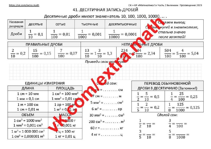 Для изучения этой темы вы можете использовать материалы: 🆗5 кл Десятичные дроби extramath.ru/p/18240 👜Магазин дидактических материалов для уроков математики: extramath.ru 📚Таблица КТП: clck.ru/3RDXqk