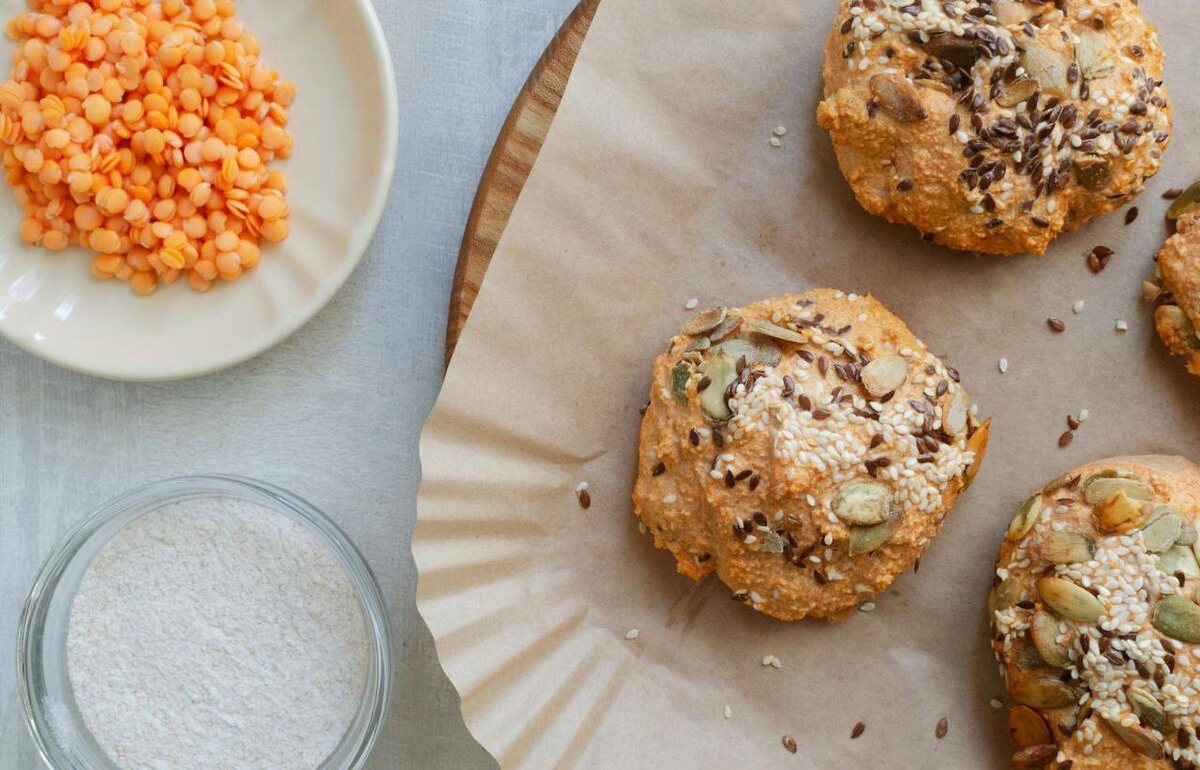 ) Иногда хочется хлеба, но обычная выпечка — это рафинированная мука и быстрые углеводы. Эти булочки — более сбалансированная альтернатива: растительный белок, клетчатка и длительная сытость. Подходят к завтрак или как основа для полезного бутерброда. Ингредиенты (на 6 булочек) 🔸 красная чечевица — 1 стакан (200 г) 🔸 семена льна (молотые) — 40–50 г 🔸 псиллиум — 2 ст. л. 🔸 вода — 130–150 мл 🔸 оливковое масло — 1 ст. л. 🔸 разрыхлитель — 1 ч. л. 🔸 соль — ½ ч. л. 🔸 специи по вкусу (паприка, чеснок, куркума) по желанию: кунжут или семечки для посыпки Приготовление 1️⃣ Чечевицу промойте и замочите на 2–3 часа, затем снова хорошо промойте. 2️⃣ Семена льна измельчите в кофемолке до состояния муки. 3️⃣ В блендер добавьте чечевицу, молотый лён, воду, оливковое масло, соль и специи. Измельчите до густой однородной массы. 4️⃣ Добавьте псиллиум и разрыхлитель, перемешайте и оставьте тесто на 5–7 минут, чтобы псиллиум впитал влагу и сформировал структуру. 5️⃣ Мокрыми руками сформируйте