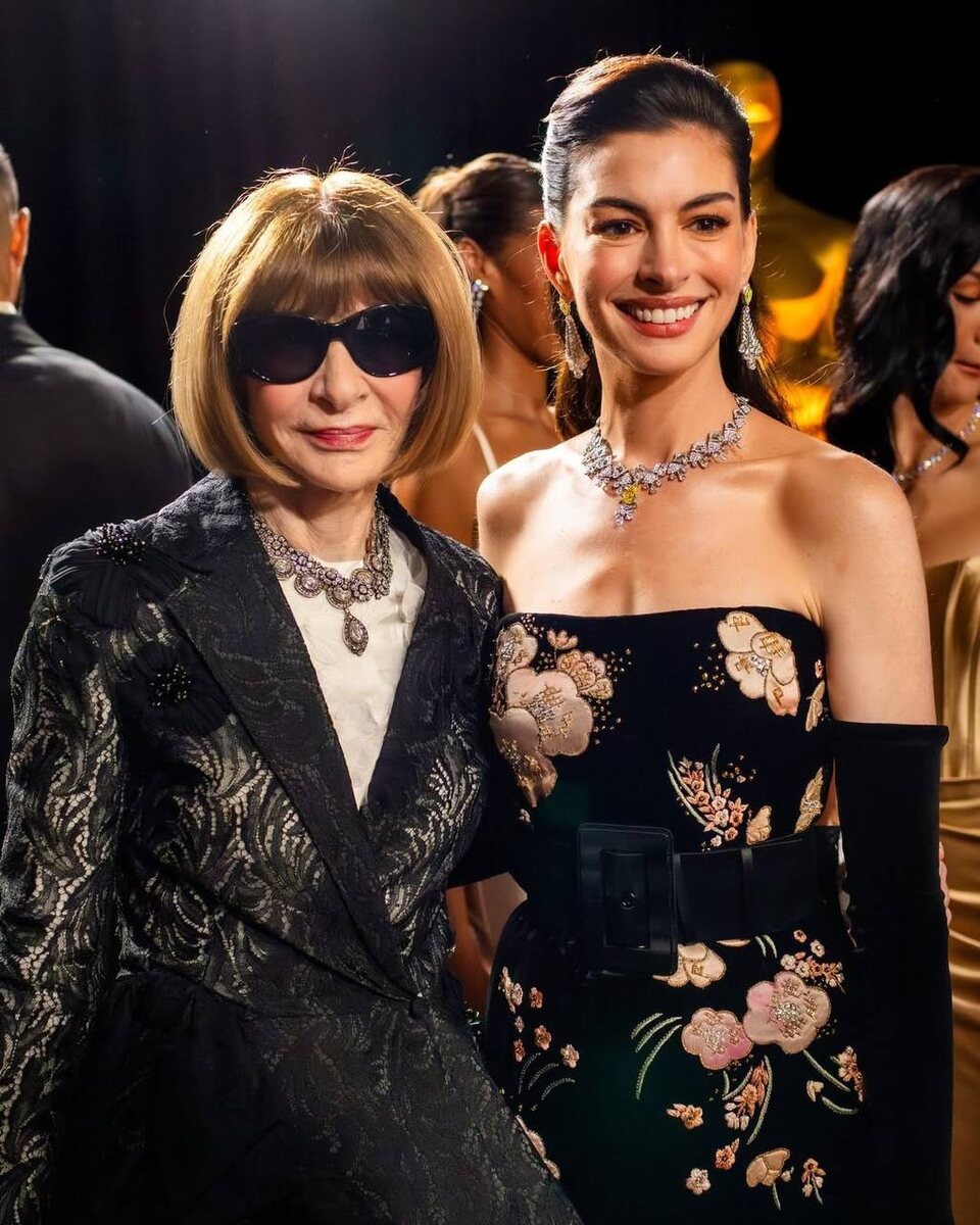 Яркий момент на церемонии: Энн Хэтэуэй и Анна Винтур вышли на сцену «Оскара» чтобы вручить статуэтку за лучшие костюмы