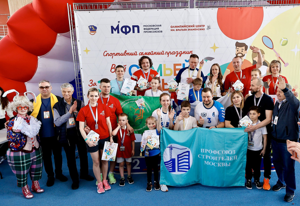 В Олимпийском центре имени братьев Знаменских прошел спортивный праздник «Всей семьей за здоровьем!». В соревнованиях, организованных Московской Федерацией профсоюзов, приняли участие почти 500 семей. Открыли мероприятие председатель Московской Федерации профсоюзов Юрий Павлов, заместители председателя Наталья Свиридова и Павел Лаптев, лидеры отраслевых профсоюзов города. Семейным командам из двух и трех человек предстояло преодолеть полосу препятствий, пройти дистанции с надувными скалодромами и лабиринтами, поучаствовать в эстафетах с обручами. «В этом году на старт профсоюзных соревнований «Всей семьей за здоровьем!» вышло порядка 2 тысяч человек. Для участников мы подготовили обновленную спортивно-развлекательную программу. На семи площадках с препятствиями родители и дети от пяти до 12 лет проходили испытания на скорость, ловкость и меткость. За победу боролись команды педагогов и врачей, работников метрополитена и автотранспорта, специалистов агропромышленного комплекса столицы и