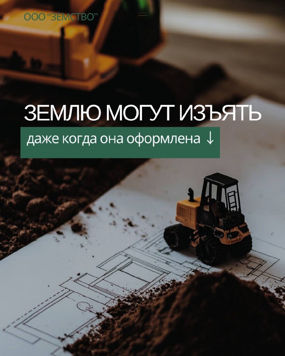 Многие собственники уверены: если земля оформлена - забрать её невозможно. На практике закон предусматривает несколько случаев, когда участок могут изъять. Вот самые распространённые: ❗ 1. Для государственных или муниципальных нужд. Например: строительство дорог, школ, линий электропередачи, инфраструктуры. В таком случае участок выкупается у собственника с выплатой компенсации. ❗ 2. Использование не по назначению. Если земля предназначена, например, для сельского хозяйства или ИЖС, но используется под склад, стоянку или свалку. ❗ 3. Участок не используется. Если землю длительное время не осваивают (особенно это касается сельхозземель), власти могут инициировать процедуру изъятия. ❗ 4. Серьёзные нарушения законодательства. Экологический вред, деградация почвы или иные нарушения правил использования земли. Важно: Изъятие не происходит “по щелчку” - это сложная процедура, которая часто проходит через суд. И во многих случаях решение можно оспорить. 📌 Если вам пришло уведомление и