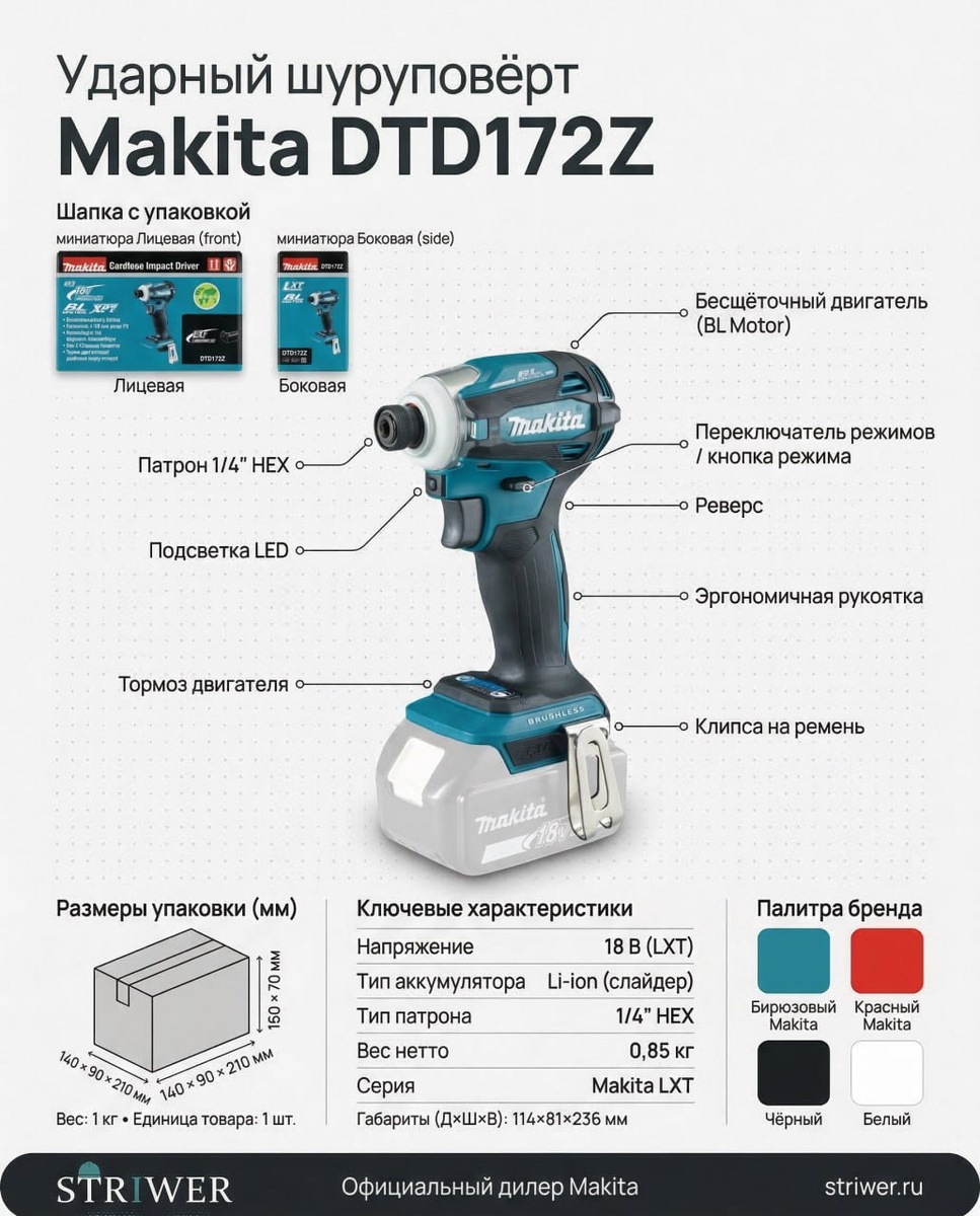 STRIWER • 60 секунд выбора — Ударный шуруповёрт Makita DTD172Z