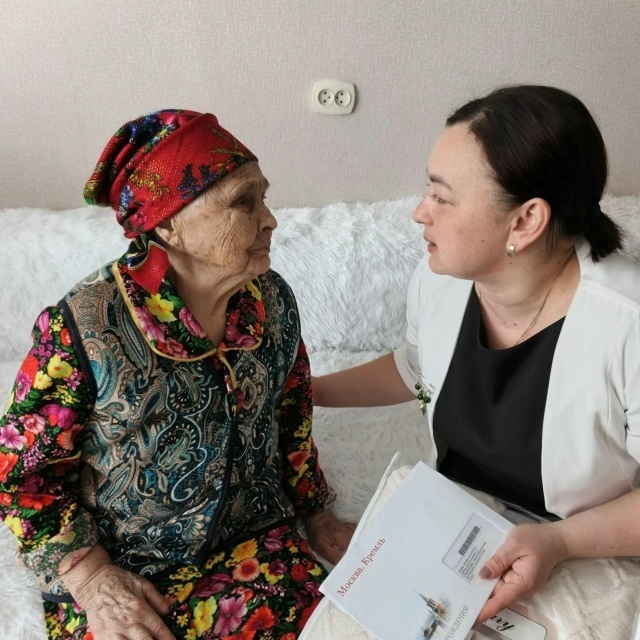 Труженица тыла из Исанбаево отметила день рождения В Ижболдинском сельском поселении не забывают своих ветеранов, если даже они в силу возраста не могут жить самостоятельно, поэтому уезжают к детям в города. На днях с 98-ым днем рождения поздравили труженицу тыла Фаиму Хасановну Яхину, которая проживает с семьей дочери в Нефтекамске. За многолетний труд она награждена медалью «За доблестный труд в Великой Отечественной войне 1941-1945 гг.». Фаима Хасановна уроженка села Исанбаева, ее детство и юность пришлись на годы военного лихолетья. Своим упорным трудом она приближала нашу Великую Победу. В последующие годы женщина трудилась дояркой и телятницей в родном хозяйстве. Всегда работала на совесть, была для других примером. Поздравила ветерана с днем рождения от имени всех земляков глава сельского поселения Гузель Шарафисламова, пожелала крепкого здоровья, душевного спокойствия, оптимизма, долгих лет жизни. Приятным сюрпризом для именинницы стали теплые поздравления от Президента Россий