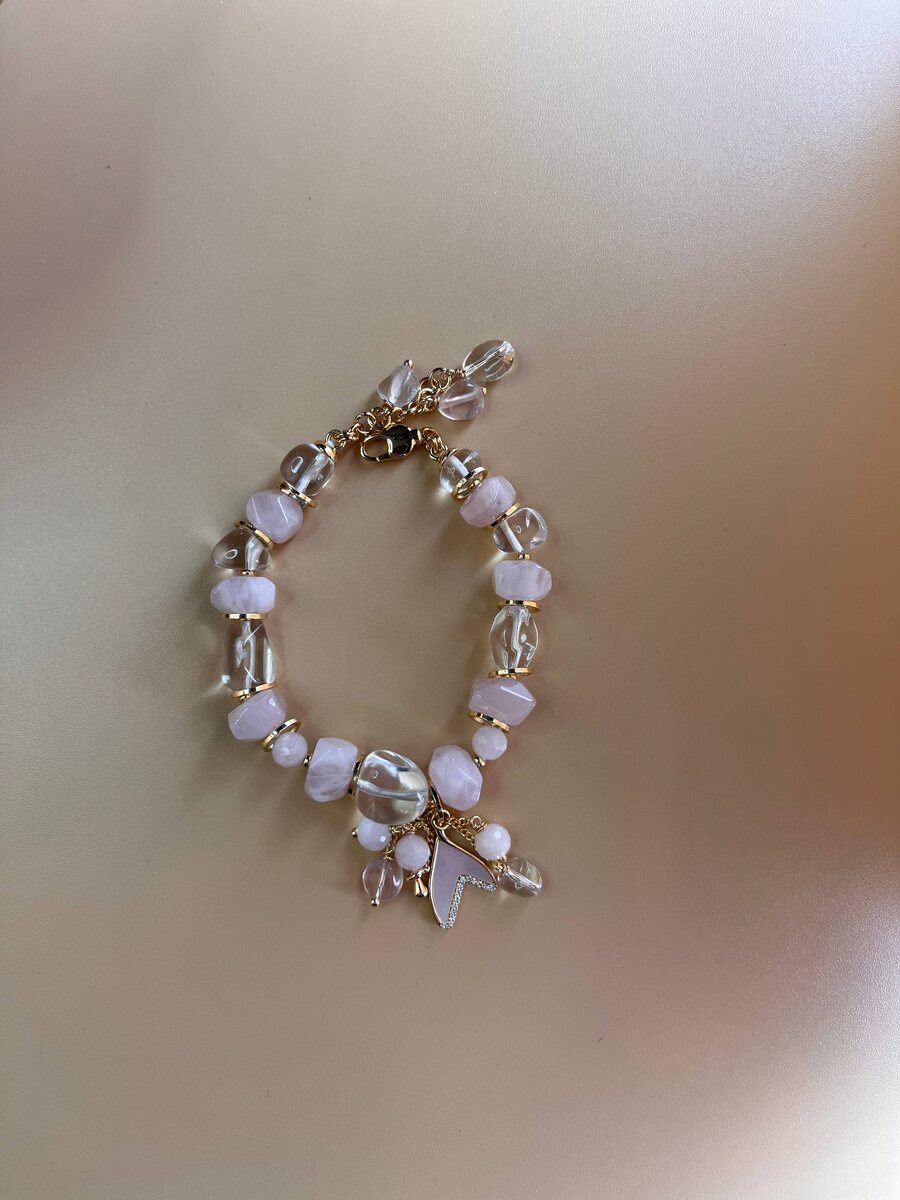 Горный хрусталь Готов новый браслет — нежный союз Розовый кварц и Горный хрусталь ✨ На камеру не смогла передать цвет браслета В жизни нежно розовый 👛 Этот дуэт появился по запросу — когда сердце хочет немного мягкости, а душа просит ясности. Розовый кварц, как всегда, отвечает за нежность, тепло и объятия (даже если они только энергетические). А горный хрусталь — за лёгкость, прозрачность мыслей и тот самый эффект «всё становится понятнее». Получился очень светлый, спокойный браслет — будто маленький островок гармонии на запястье. Теперь самый интересный момент — посмотрим, подружатся ли они с будущей хозяйкой. Иногда украшения выбирают нас сами… а иногда сначала немного присматриваются 👀