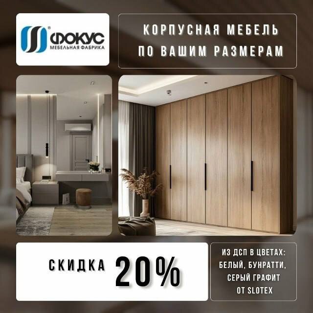 🫶🏻 Представляем вам нашу уникальную корпусную мебель, созданную по индивидуальным размерам и с учетом ваших предпочтений. Изготавливаемая из качественного ДСП, наша мебель доступна в трех стильных цветах: классическом белом, элегантном бунратти и современном сером графите. Эти оттенки легко вписываются в любой интерьер, придавая ему изысканный и современный вид. Записаться на расчет 👇🏻 @Focus_mebel_spb +7-812-363-16-77