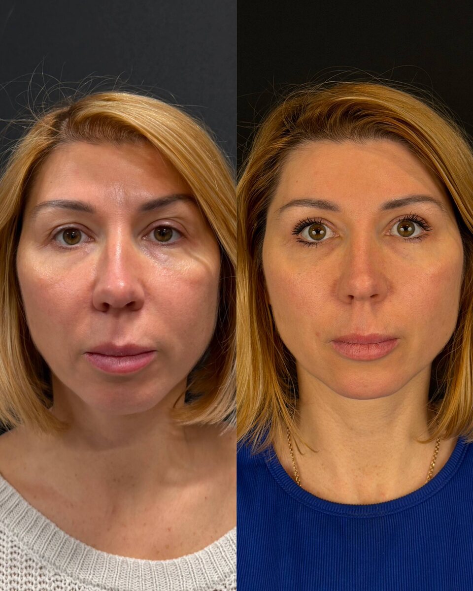 Иногда одной блефаропластики мало, особенно если с возрастом появляются не только мешки, но и впадины под глазами. Тогда работаем комплексно. Нашей пациентке сделали круговую блефаропластику и сразу липофилинг носослёзной борозды. Собственный жир мягко заполнил пустоты, убрал тени и сделал взгляд по-настоящему свежим 🔥 Два месяца это отличный срок, чтобы оценить результат. Отёки давно ушли, ткани успокоились, липофилинг прижился идеально. Нижние веки выглядят гладкими, без пустот и впадин, верхние открытыми и лёгкими. Никакой «оперированности», только отдохнувшее, помолодевшее лицо 🤍 Пациентка признаётся: перестала ловить себя на мысли, что выглядит уставшей. Просто просыпается и идёт по делам с лёгкостью. А для нас это лучший комплимент. Комплексно, бережно и очень красиво ♥️