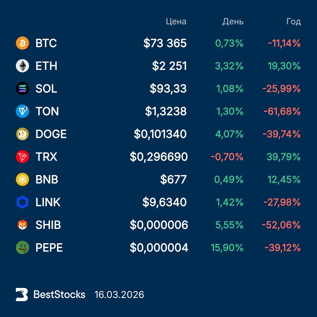 Курсы основных криптовалют: Bitcoin, Etherium, Solana, Toncoin, Dogecoin, TRON, BNB, Chainlink, Pepe, Shiba Inu на текущий момент