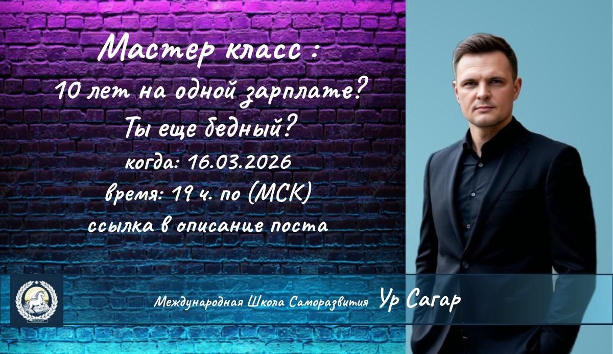 : 10 ЛЕТ НА ОДНОЙ ЗАРПЛАТЕ? ТЫ НЕ БЕДНЫЙ. ТЫ ЗАКОНСЕРВИРОВАЛ СВОЮ НИЩЕТУ. Здравствуйте, дорогие Ученики и слушатели нашей школы. Посчитай сам. 10 лет назад ты получал 30 тысяч. Сейчас — 80. Цены выросли в 3 раза. Инфляция сожрала твои сбережения, если они были. А если не было — сожрала твою жизнь. Ты работаешь больше, а живешь хуже. Кредиты жрут половину зарплаты. Отложить — смешно. Пенсия? Какая пенсия, если ты сейчас еле сводишь концы? Денег не хватает не на что. О какой безопасности может идти речь? Находимся в постоянном дефиците всего. Что делать? И самое страшное — ты привык. Смирился. Думаешь: "все так живут". Врут. Не все так живут... Есть те, кто 10 лет назад был таким же, как ты. А сегодня у них квартиры, пассивный доход и пофиг на курс доллара. Они не умнее. Они просто увидели дверь, в которую надо войти. Ты стоишь перед той же дверью. Но боишься. Или не знаешь, с какой стороны открывается. 16 марта в 19:00 МСК я проведу бесплатный мастер-класс для тех, кто устал. Т
