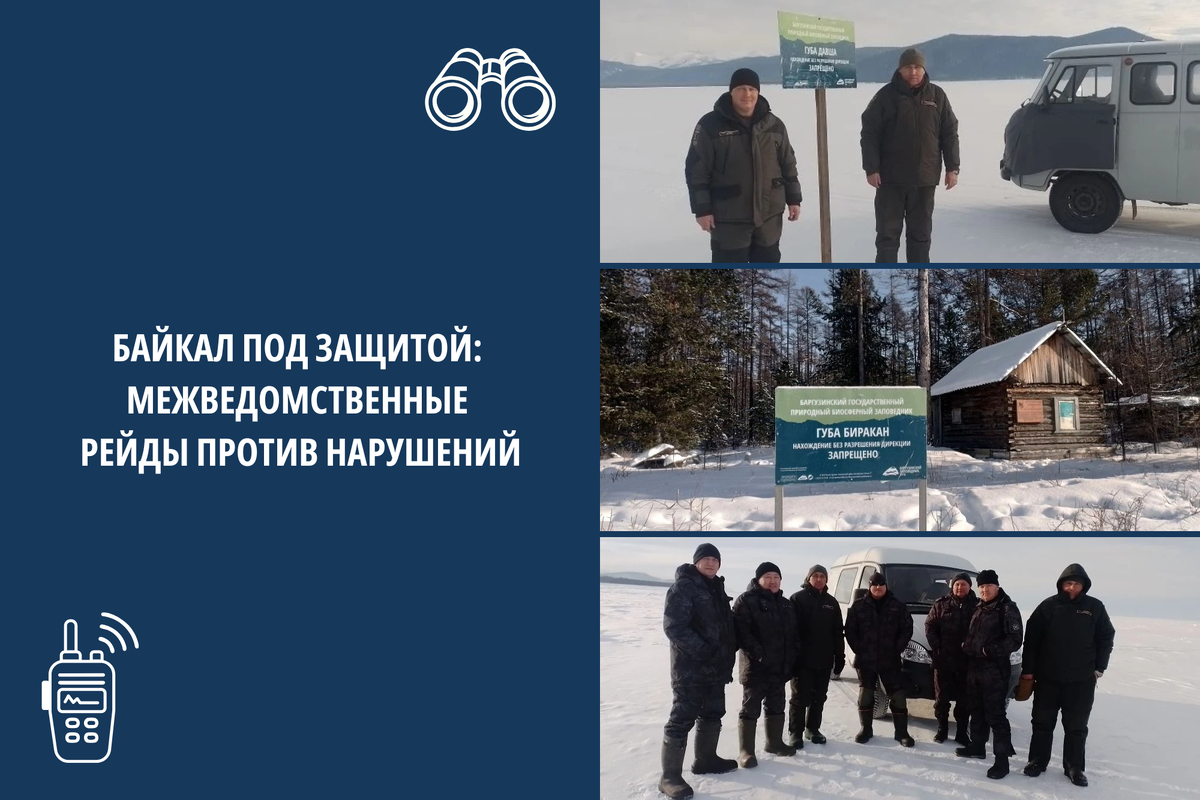 В феврале 2026 года инспекторами «Заповедного Подлеморья» и Ангаро-Байкальского территориального управления Федерального агентства по рыболовству были проведены совместные рейды. Цели таких выездов – борьба с браконьерством и незаконным выловом водных биоресурсов в озере Байкал, включая акваторию Баргузинского заповедника и прилегающие воды, а также пресечение незаконного нахождения на заповедной территории. В результате совместных действий было выявлено 36 фактов нарушения природоохранного законодательства России, в их числе: 29 эпизодов, связанных с нарушениями Правил рыболовства, и 7 случаев несоблюдения требований по охране и использованию природных ресурсов на особо охраняемых природных территориях. Так, в отношении 29 человек оформили протоколы за нарушение правил рыболовства (ч. 2 ст. 8.37 КоАП РФ). За это предусмотрен штраф от 2 до 5 тысяч рублей, а также изъятие незаконных орудий лова и транспорта. Ещё 7 человек привлекли к ответственности за нарушение правил охраны и использо