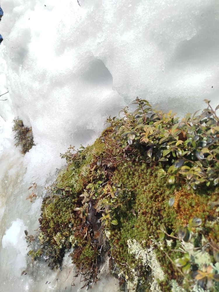 Когда суровые уральские снега начинают отступать, обнажая поверхность скал, взору открывается удивительная картина: жизнь здесь не просто сохранилась, она готова к мгновенному старту. Моховые подушки (маты), ковры лишайников и кожистые листья брусники предстают перед наблюдателем в первозданной свежести, словно и не было долгих месяцев ледяного плена. ❄️ В Каменном городе особый микроклимат, создаваемый высокими «стенами», с особыми условиями освещенности и влажности. Неравномерное распределение снега становится главным союзником низкорослой растительности. В момент таяния становится очевидным, насколько эффективно природа подготовила местных «обитателей» к выживанию в экстремальных условиях. Основной фактор благополучной зимовки мхов, лишайников и брусники - снежная теплоизоляция. Под слоем снега толщиной даже от 30-50 см температура почвы и приземного слоя воздуха остается относительно стабильной, редко опускаясь ниже -5°C...-10°C, даже при сильных морозах на поверхности. Это и защи