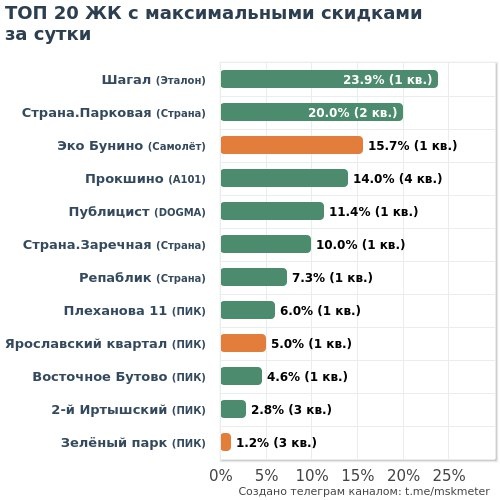 🟩 Честные скидки: 9 ЖК (15 кв.) 🟧 Маркетинг скидки: 4 ЖК (7 кв.) 💎 МАКСИМАЛЬНАЯ ЭКОНОМИЯ 🏆 Эталон • Шагал └🔻4.7M → 19.7M • 1-к 39м² 🥈 Страна • Репаблик └🔻4.1M → 55.5M • 2-к 76м² 🥉 A101 • Прокшино ├🔻2.9M → 20.5M • 2-к 53м² ├🔻2.8M → 20.2M • 2-к 53м² └🔻2.8M → 19.9M • 2-к 51м² 4️⃣ Страна • Страна.Парковая └🔻2.4M → 12.1M • 2-к 35м² 5️⃣ Страна • Страна.Заречная └🔻1.9M → 18.6M • 3-к 49м²❗️ 6️⃣ DOGMA • Публицист └🔻1.3M → 11.0M • 2-к 64м² 7️⃣ ПИК • Плеханова 11 └🔻1.2M → 19.8M • 1-к 38м² 🔑 САМЫЕ ДОСТУПНЫЕ 🏆 Страна • Страна.Парковая ├🔻572к → 7.4M • Студия 22м² └🔻2.4M → 12.1M • 2-к 35м² 🥈 ПИК • Восточное Бутово └🔻345к → 7.5M • 1-к 42м² 🥉 DOGMA • Публицист └🔻1.3M → 11.0M • 2-к 64м² 4️⃣ ПИК • 2-й Иртышский ├🔻415к → 14.8M • 1-к 35м² ├🔻472к → 16.8M • 1-к 35м²❗️ └🔻471к → 17.0M • 1-к 35м² 5️⃣ Страна • Страна.Заречная └🔻1.9M → 18.6M • 3-к 49м²❗️ 6️⃣ A101 • Прокшино └🔻2.8M → 19.7M • 2-к 53м² ❗️— лоту меньше месяца 👇 Полная статистика: 📲 В Telegram | 🌐 На Msk