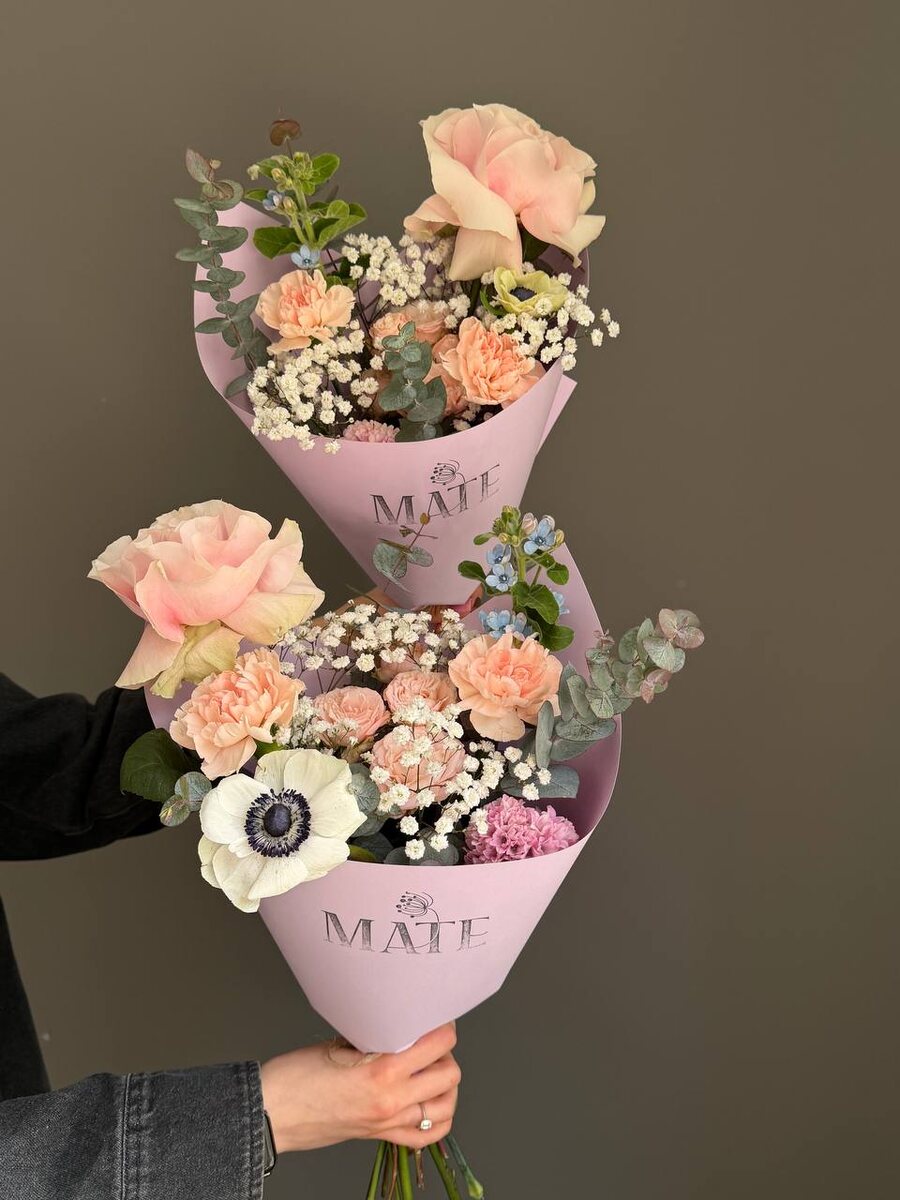 ! Самые сочные, сезонные и по лучшим ценам для вас, любименькие: ☄️ в зеленом 3100 вместо 3950.- маттиола/эрингиум/ирис/роза Охара/гиацинт/леукадендрон/диантус 🪻 в лавандовом 3200 вместо 4150.- роза Мондиаль/роза кустовая Бомбастик/анемон/гипсофила/твидия/диантус/эвкалипт 😉 в оранжевом 3550 вместо 4700.- роза Нина/роза Рэд монстр/вибурнум Розеум/альстромерия/тюльпан/диантус/роза кустовая Бомбастик/лагурус Для заказа: @mateflowers_bot