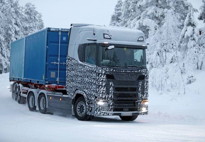 ! ❄️ Шведы обновляют легендарную New Generation (2016 года). Камуфлированные грузовики уже проходят зимние тесты в Арктике. 🔹 Новая решётка радиатора 🔹 Камеры вместо зеркал (теперь над дверями) 🔹 Утопленные ручки дверей для лучшей аэродинамики Премьера ожидается в начале 2027 года 🔥 #Scania #R_Series #Фейслифт #TruckNews #ИстраСкан