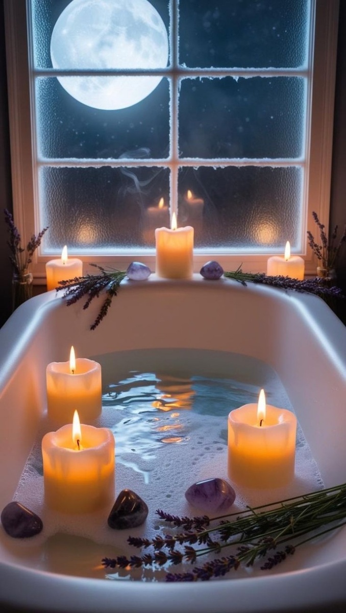 В эту фазу лунные энергии находятся на пике, и это прекрасное время для самоанализа и отпускания негатива. Перед обрядом на листе бумаги запишите то, что пора отпустить, и сожгите или разорвите бумагу на клочки. Затем добавьте в воду любимую соль для ванн, поставьте рядом любимые свечи и минералы. Когда примете ванну, слейте воду, представляя, как все, о чем вы написали, покидает ваше тело.