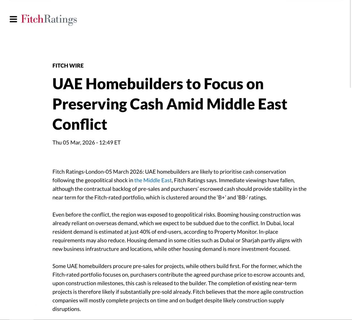 π€Π Π΅ΠΉΡΠΈΠ½Π³ΠΎΠ²ΠΎΠ΅ Π°Π³Π΅Π½ΡΡΡΠ²ΠΎ Fitch ΠΎ ΡΠΈΡΡΠ°ΡΠΈΠΈ Ρ Π΄ΡΠ±Π°ΠΉΡΠΊΠΎΠΉ Π½Π΅Π΄Π²ΠΈΠ³ΠΎΠΉ