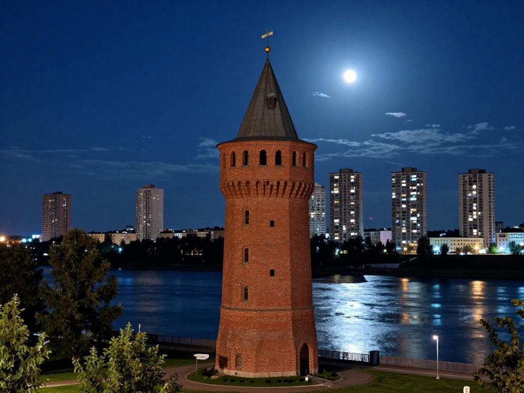 Трёхэтажная башня из красного кирпича возвышалась над рекой Белой, блестевшей в лунном свете. Вдалеке сверкали окна высотных домов. Над головой сияли яркие звёзды.