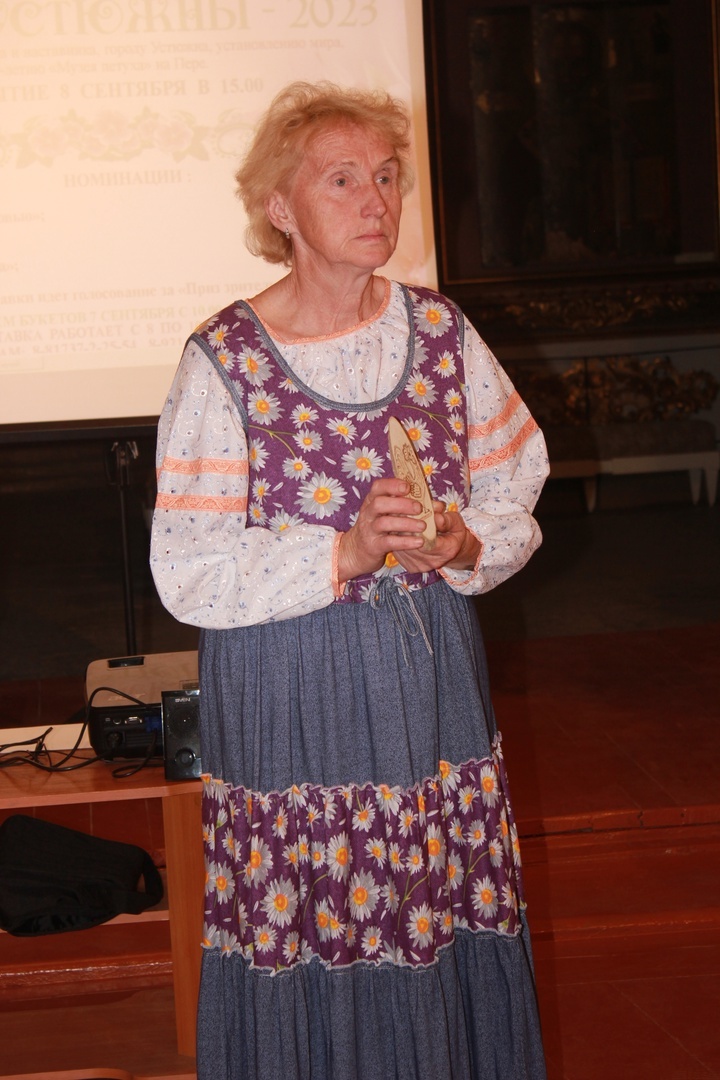 Описание: В краеведческом музее г. Устюжны проходил конкурс "Цветы Устюжны". Библиотекаря пригласили вручить приз зрительских симпатий в номинации "Золотой петушок" как организатора музея петуха.