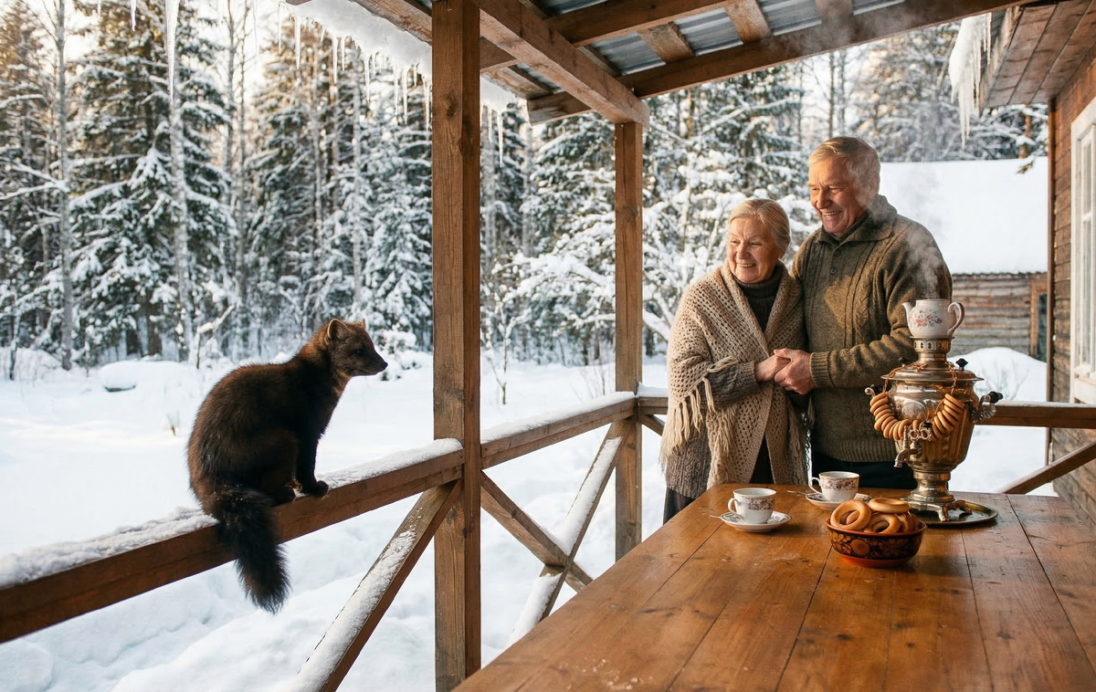 Они держались за руки. Их лица были спокойными и счастливыми. Они смотрели, как Шустрик, который за этот месяц стал совсем взрослым и красивым соболем, пытается незаметно стащить со стола сушку. Он подкрадывался к ней, смешно припадая к земле, потом резко хватал зубами и пытался удрать.