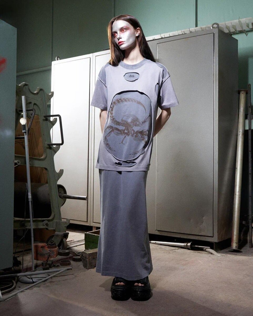 Мы спустились на этаж ниже, чтобы познакомиться с его участниками и рассмотреть вещи поближе. Московский бренд K16CH1 — новичок на российском рынке и дебютант маркета. На стенде марки — авангардные вещи на стыке научной фантастики и метавселенных: фактурный деним, сложные текстуры и детали, которые хочется разглядывать. Стирка с камнями, искусственные порезы, вплетённые волосы — лишь некоторые из техник, которые команда использует в работе. Подробнее об эстетике бренда и каналах продаж рассказывает дизайнер K16CH1 Никита Вознесенский. ✔️ PROfashion Channel В этом посте есть большое видео, которое не загрузилось в Дзен. Откройте оригинал поста в телеграме, чтобы его посмотреть