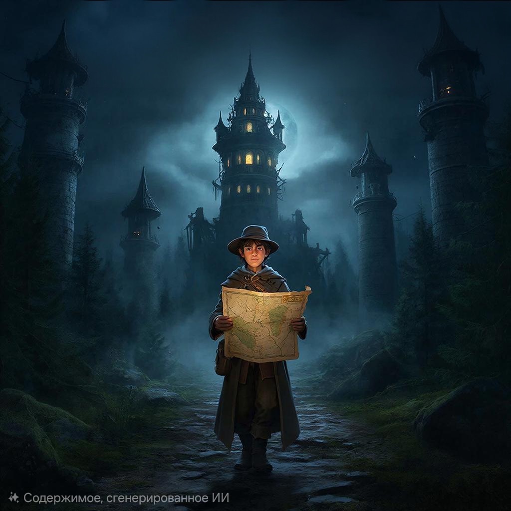 Ночь настигла его у подножия холма. Там, где карта обещала башню, виднелись лишь черные камни, поросшие мхом. Луна поднялась над облаками, и в ее свете Элдрик заметил нечто странное — узкую трещину между камнями.