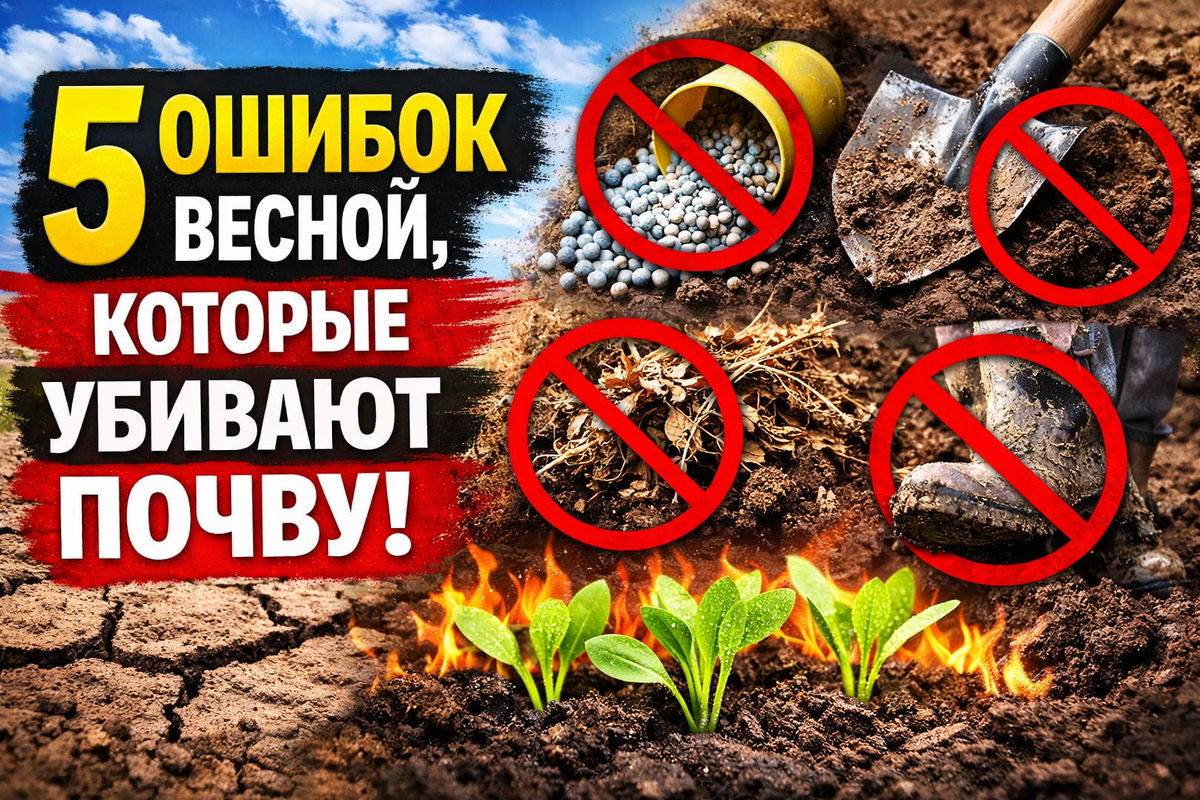 Кажется, что чем раньше перекопать, удобрить и посадить — тем лучше будет урожай. Но опытные садоводы знают: именно весной можно легко испортить почву на весь сезон. Есть несколько распространённых действий, которые многие делают по привычке, даже не подозревая, что они буквально разрушают структуру земли и снижают урожайность. Вот 5 вещей, которые категорически нельзя делать с почвой весной. Это одна из самых частых ошибок. Когда почва ещё сырая после таяния снега, она выглядит мягкой и податливой. Кажется, что это идеальное время для перекопки. Но на самом деле происходит обратное. При ранней перекопке: Проверить готовность земли просто. Возьмите горсть почвы и сожмите её: Многие дачники стараются сделать участок идеально чистым: Но эта органика — ценнейший источник питания для почвы. Она: Поэтому часть органических остатков лучше оставлять или заделывать в землю. Весной часто хочется «подкормить землю от д