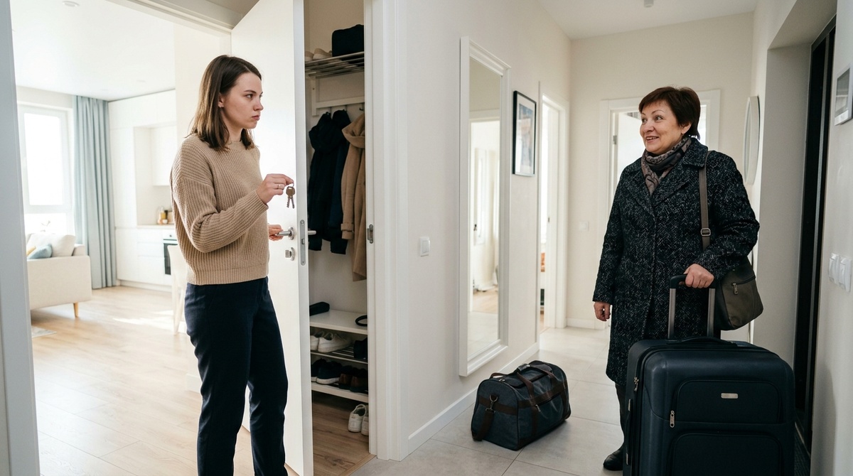 Я открыла дверь. Галина Петровна стояла на пороге в бежевом плаще, чемоданы — по обе стороны, как часовые.