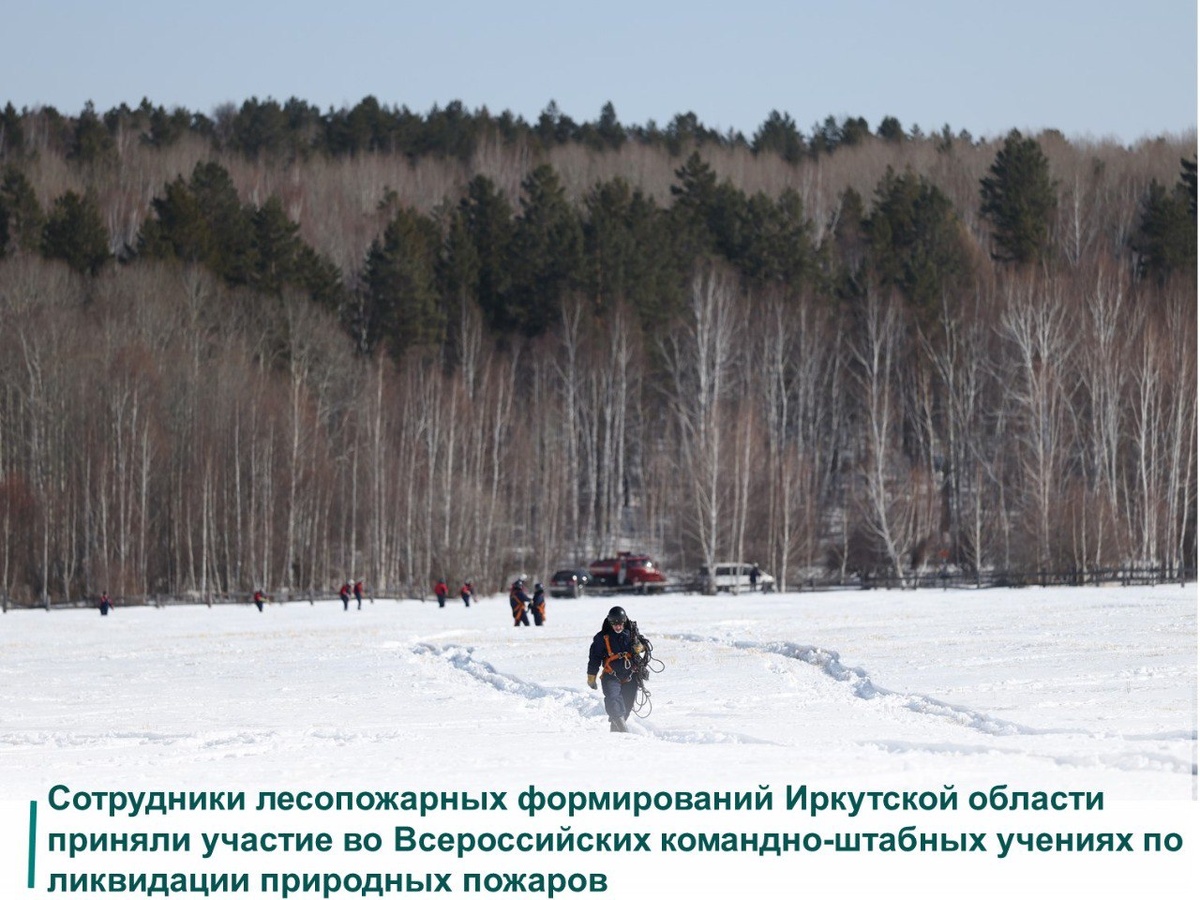 пожарно-спасательной службы. Были задействована авиация и десант. Отработана система действий при переходе ландшафтных пожаров на земли лесного фонда. Такие учения проводим ежегодно, чтобы наладить оперативное и четкое взаимодействие между службами, осуществляющими тушение пожаров на землях разных категорий, – рассказал министр лесного комплекса Иркутской области Павел Кирдяпкин. Во время учений отработали доставку воды с помощью МИ-8 для заправки ранцевых огнетушителей, эвакуацию травмированного лесного пожарного на вертолете и эвакуацию в медучреждения пострадавших из жилых домов силами спасателей и медиков, эвакуацию населения в пункт временного размещения. Анализ действий всех профильных служб во время учений проведен на заседании областной комиссии по чрезвычайным ситуациям под председательством первого заместителя Губернатора Иркутской области Романа Колесова.