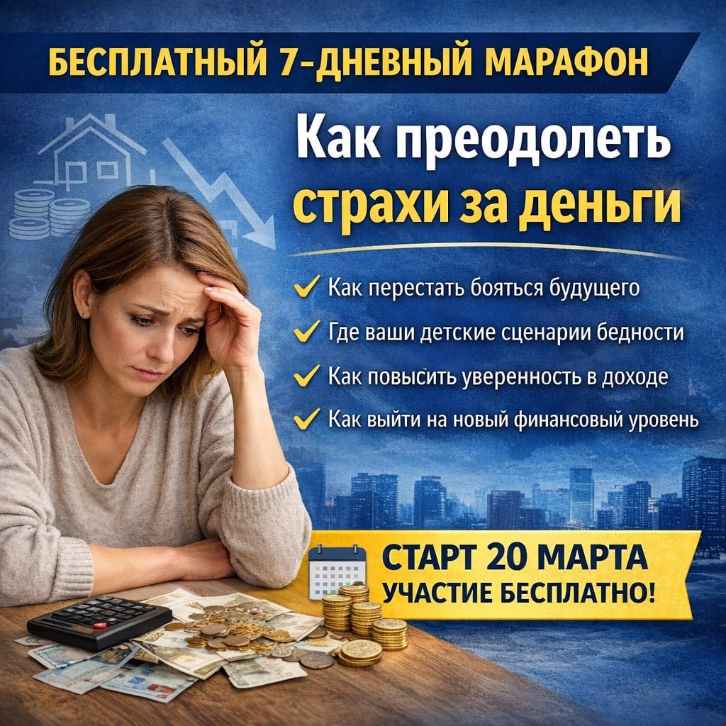 По результатам опроса стало видно, что тема финансовых страхов откликается многим. И это неудивительно. Наше отношение к деньгам часто формируется ещё в детстве. Семейные кризисы, нестабильность, переживания родителей — всё это может закрепиться внутри как установка: «Денег может не быть. Нужно постоянно бояться». Но с такими убеждениями можно работать. Поэтому я решила провести бесплатный 7-дневный марафон, на котором мы разберём: ✔️ откуда берётся страх за деньги ✔️ какие детские сценарии влияют на доход ✔️ как перестать жить в постоянной тревоге ✔️ как преодолеть свою финансовую планку 📅 Старт: 20 марта Закрытая ТГ группа Участие бесплатное. Если вам откликается эта тема — напишите «ДЕНЬГИ» в комментариях, и я отправлю подробную информацию.