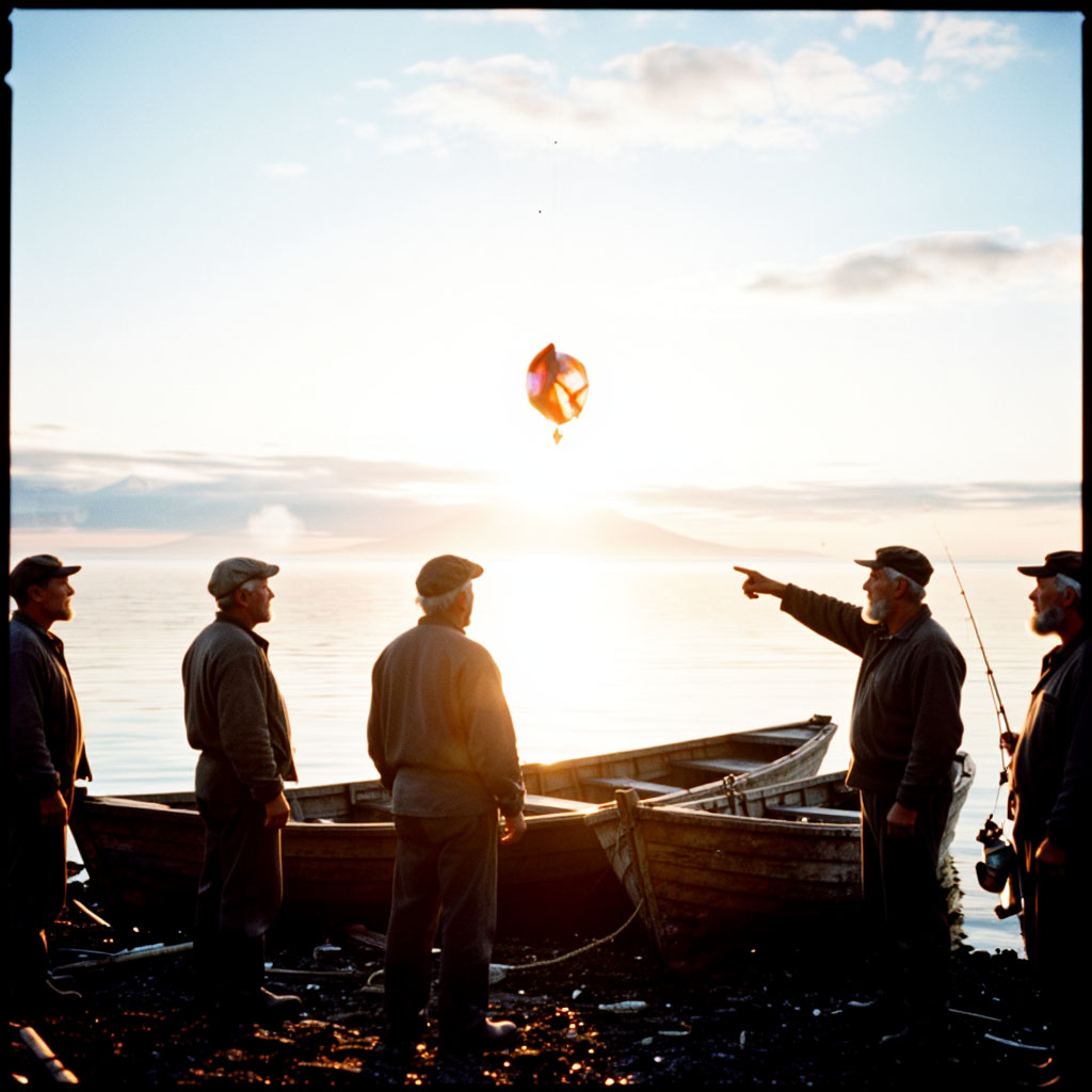 В 1973 году на Камчатке, в небольшом рыбацком посёлке, жизнь текла размеренно и привычно: утром — выход в море, днём — обработка улова, вечером — разговоры у костра. Но в один августовский вечер всё изменилось. Небо было ясным, без единого облачка, а море — спокойным, словно зеркало. Рыбаки уже собирались возвращаться к берегу, когда один из них, старый Василий, вдруг замер, вглядываясь вдаль, и хрипло произнёс: «Что это там?..» Все обернулись. Вдалеке, примерно в трёх милях от берега, над поверхностью воды что‑то мерцало. Сначала подумали — отблеск солнца на корпусе какого‑то судна. Но объект двигался странно: не плавно, как корабль, а скачками, будто прыгал по воде. Он то поднимался на несколько метров вверх, то резко опускался, оставляя за собой круги на поверхности. Цвет его менялся: то ярко‑оранжевый, то бледно‑голубой, то вовсе исчезал, становясь почти прозрачным. Рыбаки замерли, не в силах оторвать взгляд. «НЛО», — прошептал кто‑то. Слово повисло в воздухе, тяжёлое и пугающее. О