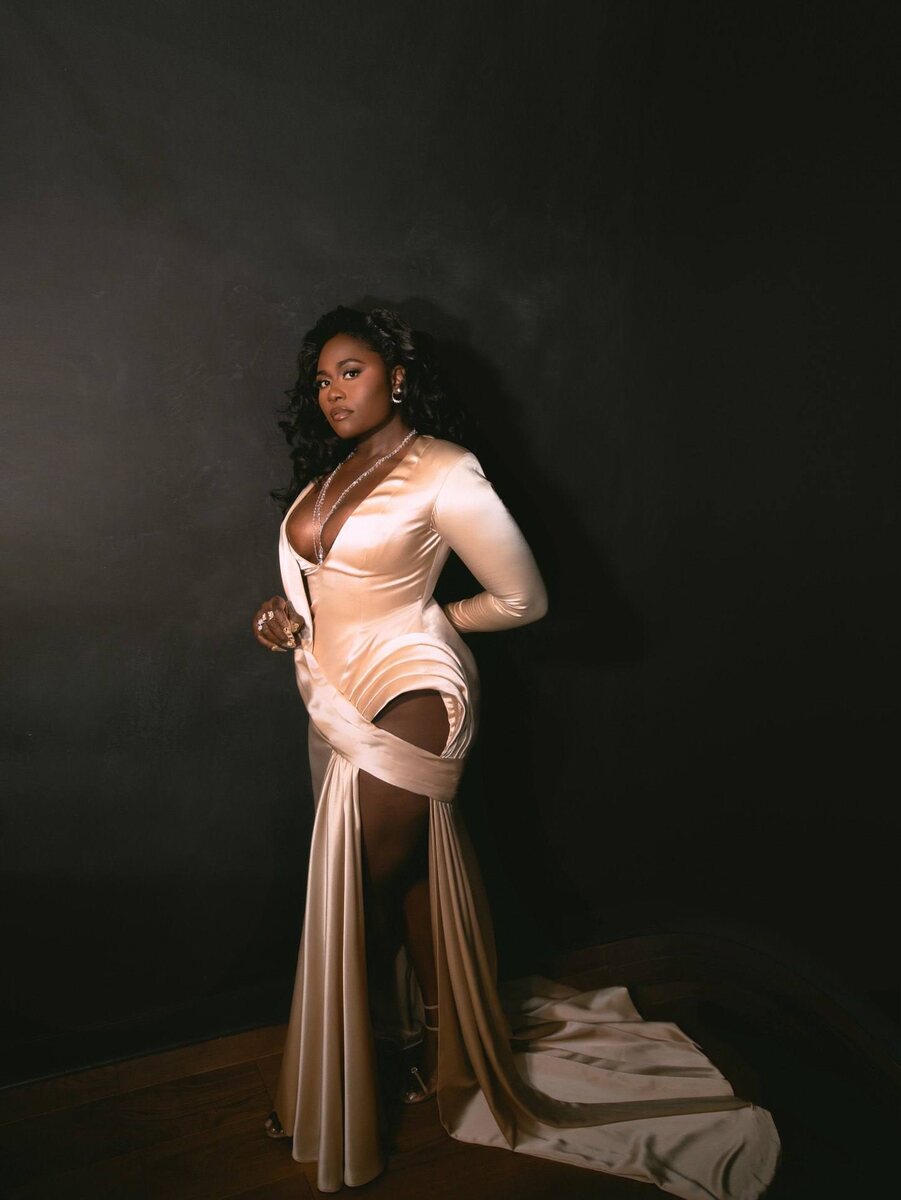 Красивая работа с формами и пропорциями актрисы: глубокие вырезы на платье в пол создают графичные и женственные линии. Мягкий оттенок шампани, драпировка и архитектурный корсет, переходящий в асимметричный пояс. Как вам такой выход? #DIVNOxВдохновение