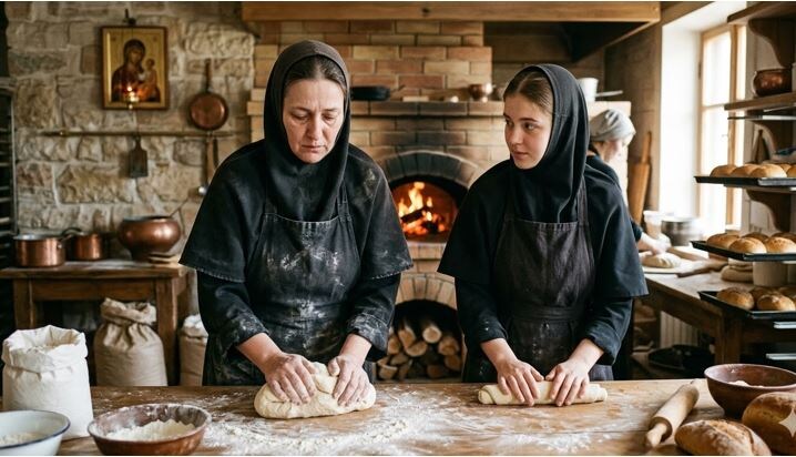 Монастырь встретил её тем, чего не было в городе: тишиной, которая не давила, а будто слушала. Внутри пахло воском, старым деревом и печным дымом. Настоятельница посмотрела на Елену быстро, точно и без любопытства — как на человека, который пришёл не спорить, а падать. Послушание выдали простое: пекарня и трапезная, с утра до ночи.