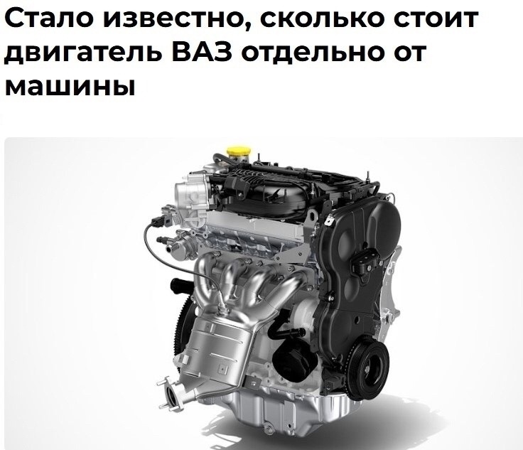 Один из тольяттинских дилеров опубликовал прайс-лист на двигатели для автомобилей «Лада». Моторы ВАЗ купить не так просто, как готовый автомобиль «Лада», но всё-таки можно. АвтоВАЗ продолжает отгружать в торговую сеть двигатели в сборе — их можно приобрести у некоторых дилеров в Тольятти. Сколько же стоит мотор отдельно от машины? Самые доступные варианты — это карбюраторные моторы, выпуск которых продолжается на АвтоВАЗе в небольших количествах. Например, двигатель ВАЗ-2106 объёмом 1,6 литра, который ставился на некоторые модели «Жигулей», обойдётся в 115 000 рублей. А 1,7-литровый мотор ВАЗ-21213 для «Нивы» старого образца оценивается в 120 000 рублей.