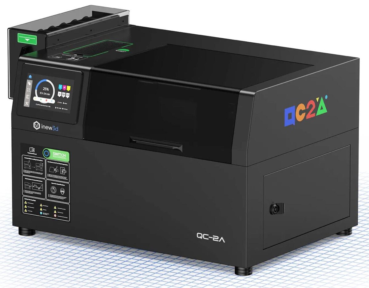 Хотим вам рассказать о демократизации в очень сложной технологии, когда многие уже сдались и не рассчитывали увидеть что-то близкое к лидерам, но за вменяемые деньги. Тихая революция, — сказала бы нейросеть. Но Трубашевский врывается в зал, где менеджеры одной из лидирующих компаний в сфере АТ уже читают презентацию, а ухоженные дизайнеры в аксессуарах Prada, лоснящиеся от самодовольства, ликуют. Все вьются мухами вокруг ЛПР заказчика. На огромном экране — яркие, будто живые, картинки прототипов. Еще немного, и все дойдут до обсуждения цены, и это будет больно… Он врывается и показывает новую реальность. И что же это за параллельная реальность? Реальность, в которой… Компания SIMBA 3D запустила на Kickstarter принтер QC2A под суббрендом inew3d. Это настольный полноцветный принтер на основе струйной фотополимерной печати с ценой $9 999 и $7 199 по ранней цене кампании. QC2A использует технологию Material Jetting (MJ), когда материал буквально выбрызгивается из микродюз печатающих голо