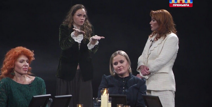 Но тут, как назло, выяснилось, что настоящая "черная вдова" — та самая Екатерина с четырьмя мужьями — сидела совсем в другом углу. Анзор Одишария, который, помните, слушал сердцебиение и просил женщин произносить слово "мужчина", оказался прав. Он выбрал Екатерину и попал в точку, да еще и историю рассказал жуткую про измены и потерянного ребенка.