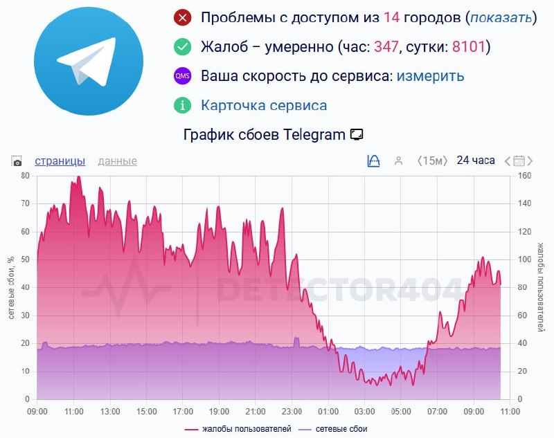 Больше всего «прилетает» из Санкт-Петербурга, Омска и Сочи Пользователи жалуются на невозможность отправить сообщения и загрузить медиа. Напоминаем, что следить за новостями также можно в нашем канале в Max. Читайте нас там, где вам удобно! #Сервисы Telegram | Max | Дзен