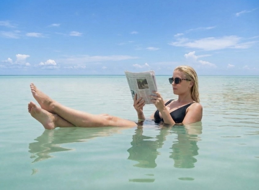 Оптимальная поза для плавания в Мертвом море — лежа на спине с вытянутыми руками и ногами. В такой позиции тело автоматически принимает стабильное положение. Голова остается над водой, а риск попадания соленой воды в лицо минимален.