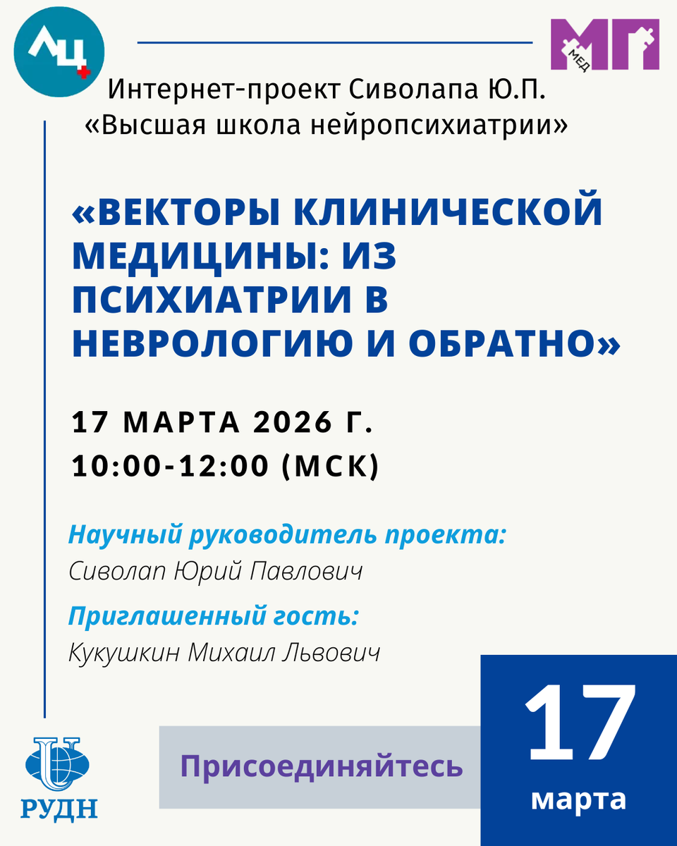 Уважаемые коллеги, приглашаем Вас к участию в интернет-проекте Сиволапа Ю.П. «Высшая школа нейропсихиатрии»
