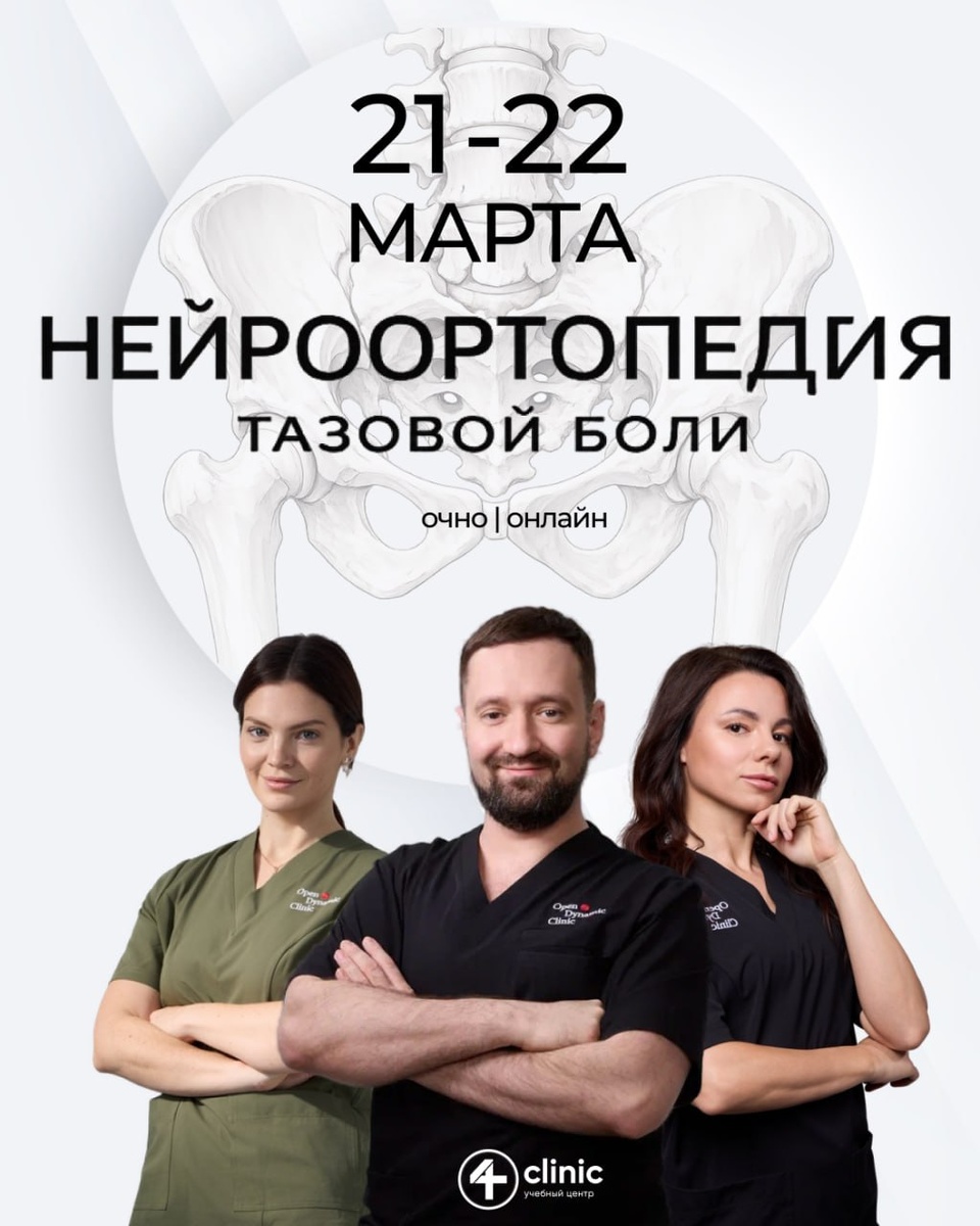 Но за одной жалобой могут стоять совершенно разные проблемы: мышечные дисфункции, нарушения биомеханики, проблемы тазового дна, нейромоторные и миофасциальные нарушения. Именно поэтому так важно не просто “знать тему”, а уметь правильно оценивать состояние пациента и грамотно оказывать медицинскую помощь. 💡 📚 Приглашаем на курс “Нейроортопедия тазовой боли” 📅 21–22 марта 2026 🕙 10:00–18:00 МСК 📍 Очно + онлайн На курсе разберем очень важное и практическое: ✔️ современные подходы к диагностике тазовой боли ✔️ механизмы возникновения боли ✔️ связь боли с мышцами тазового дна ✔️ влияние осанки, дыхания и биомеханики ✔️ диагностические тесты ✔️ терапевтические, мануальные, кинезиологические и дыхательные подходы Спикеры: 👨🏻⚕️Владимир Демченко Мануальный терапевт, врач спортивной медицины, врач физической и реабилитационной медицины, подиатр. Основатель клиники «Динамика», сертифицированный практик концепций европейского стандарта: Mulligan, Maitland, McKenzie. Член Русской Остео