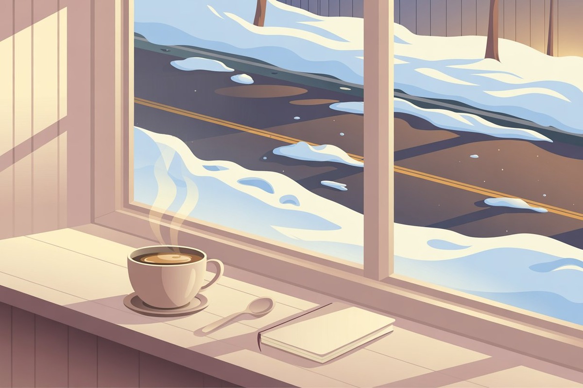 Даже в поселке, где мы сейчас живём, сквозь снег проступает асфальт. Поэтому сегодня о весне.