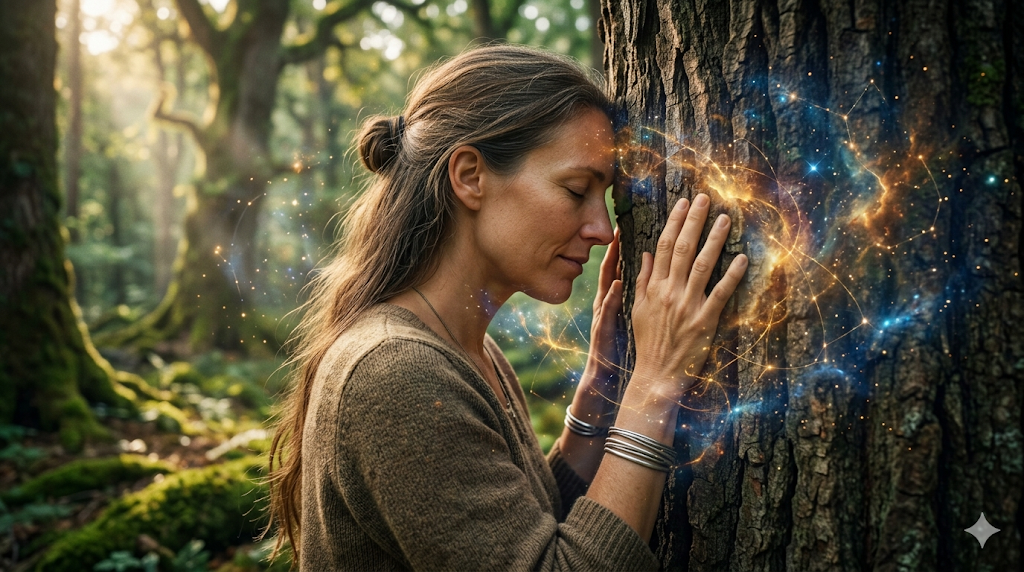 Вы вдруг кожей почувствуете, каким глубоким, монументальным спокойствием веет от этого ствола. Дерево не суетится, не пытается казаться лучше соседней березы и не страдает от кризиса среднего возраста. Оно абсолютно укоренено в настоящем моменте. Когда вы смотрите на природу без мысленного шума, ее тишина мгновенно проникает в вас, пробуждая точно такой же глубокий покой внутри. В этот миг иллюзия вашей разделенности рушится. Вы вдруг на физическом уровне ощущаете, что сотканы из одного и того же живого материала.