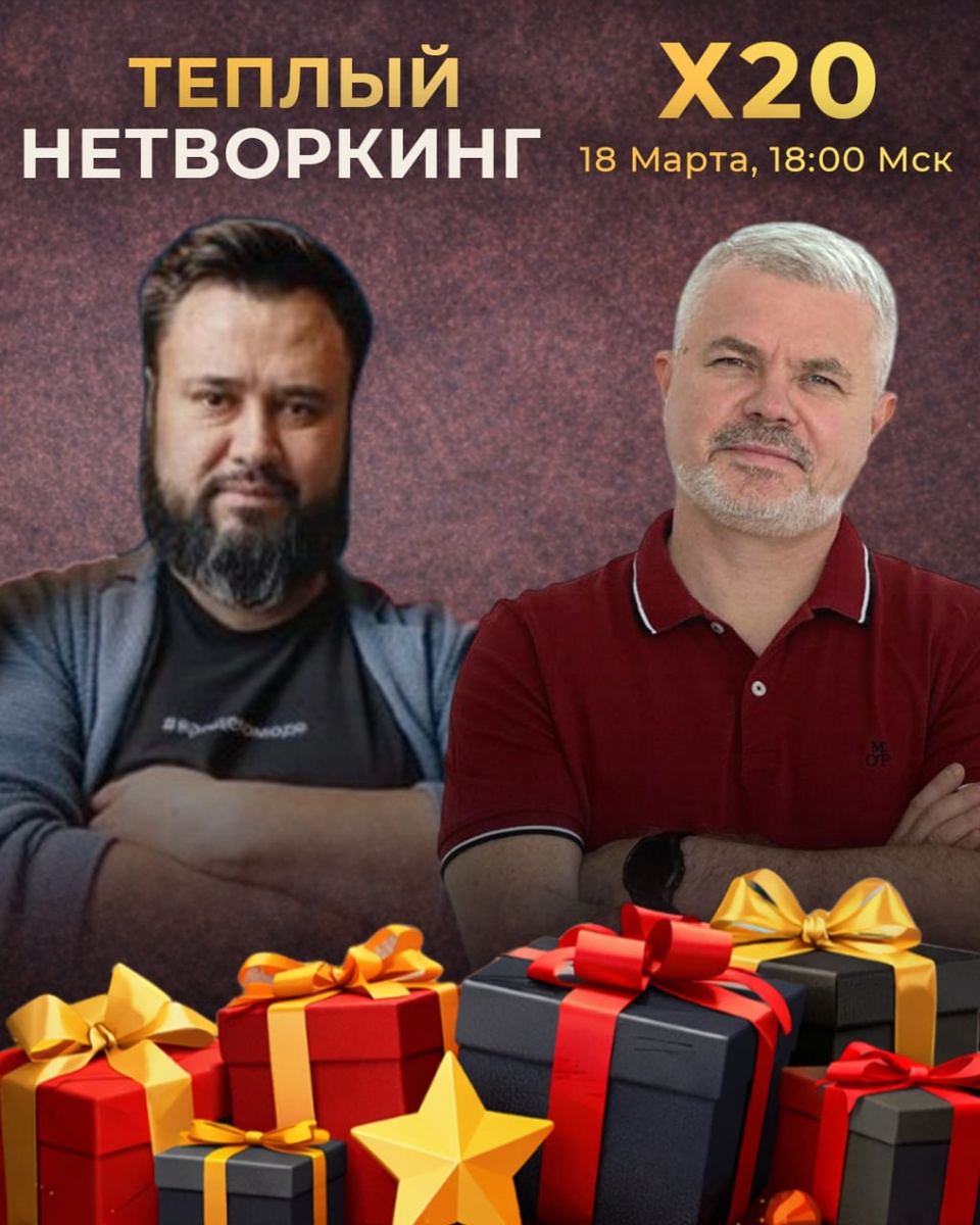 💻 Собираемся онлайн, чтобы увидеться, поговорить, познакомиться и просто хорошо провести вечер в компании предпринимателей и руководителей. 🔻В этот раз у нас будет спикер - Сергей Ким. 🔻Поговорим про оцифровку бизнеса: какие цифры действительно помогают понимать, что происходит в бизнесе, где чаще всего теряется контроль и на что предпринимателю важно смотреть регулярно. ✔️ Во время встречи можно будет задать Сергею свой вопрос. И ещё повторим то, что уже было в прошлый раз - снова проведём розыгрыш подарков для участников 🎁 Так что приходите: ➡️ посидим, поговорим, послушаем полезную тему и проведём вечер в хорошей компании. 18 марта, 18:00 МСК Тёплый нетворкинг Х20
