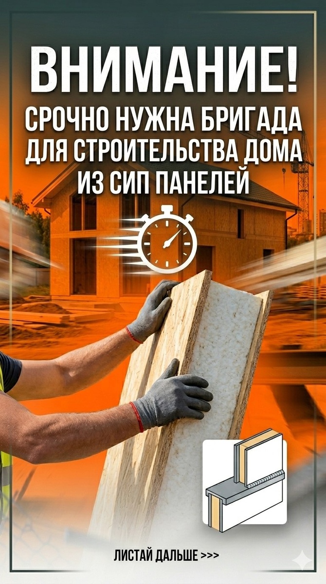 ) Тело поста: Коллеги, у нас масштабный и ответственный объект в Липецке — строительство Детского Лагеря из СИП-панелей. Объемы серьезные, сроки сжатые, поэтому ищем профессионалов, готовых сразу приступить к работе. 👉 Листайте карусель, чтобы увидеть все детали и требования! Что мы предлагаем и кого ищем (кратко): 📍 Объект: Детский лагерь, г. Липецк. 🏗️ Технология: СИП-панели (комбинированный каркас с металлом). 👥 Состав бригады: 3-5 человек. 💡 Ключевое требование: Обязательно наличие опытного СВАРЩИКА в составе бригады для монтажа силовых элементов. Опыт работы с СИП также обязателен. 📲 Готовы обсудить условия и выйти на объект? Звоните прямо сейчас или пишите в WhatsApp/Telegram: 📞 8 (952) 438 19 99 #строительстволипецк #работавстроительстве #сиппанели #сипмонтаж #требуетсябригада #сварщик #липецкработа #строимлагерь #строительство sip