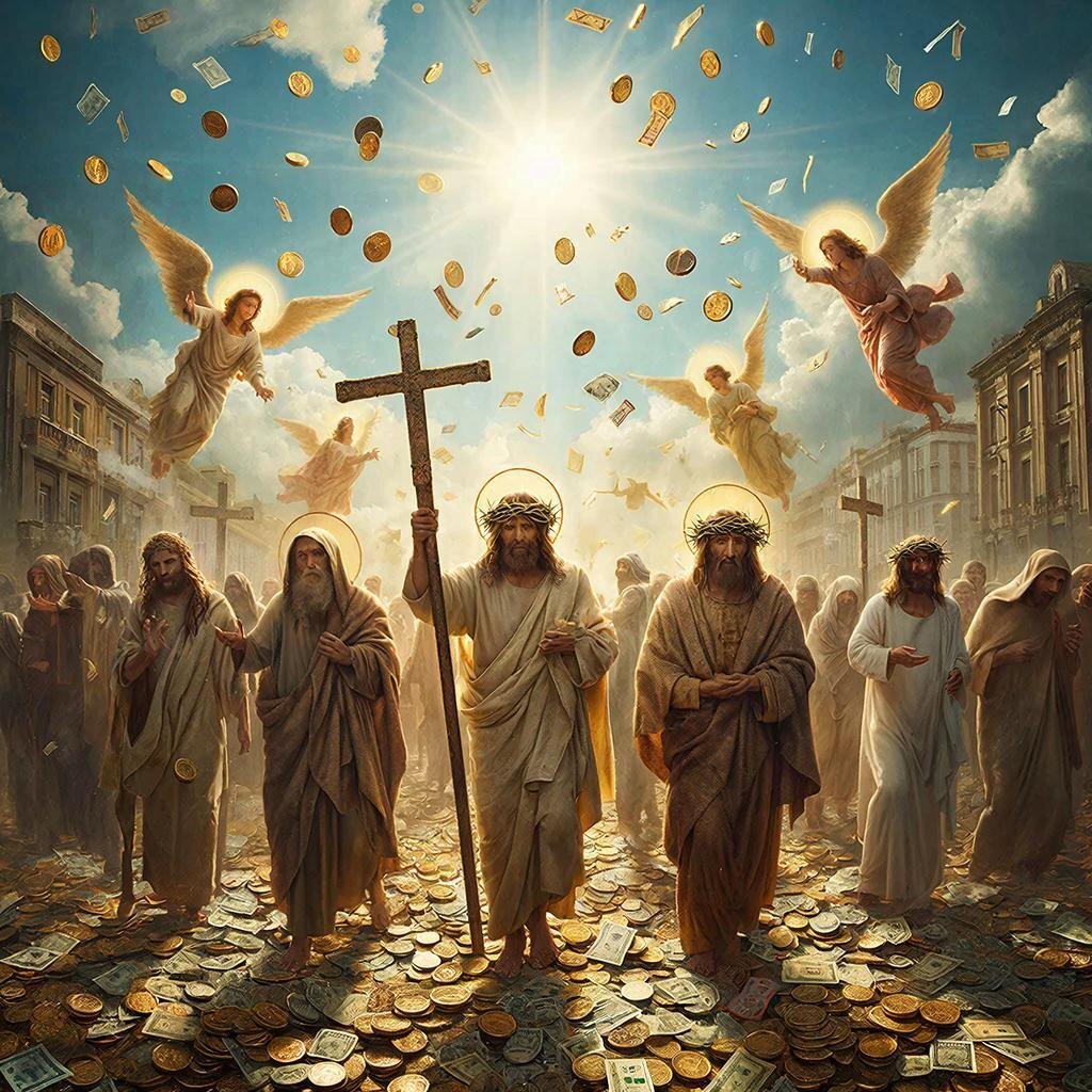 Золотое шествие святого народа. Мягкая, таинственная тишина повисла над огромной городской площадью, прерываемая лишь лёгким шелестом ветерка да осторожными шагами редких прохожих. В этом странном безмолвии казалось, что сам воздух затаил дыхание, готовясь стать свидетелем чего-то грандиозного и судьбоносного. И действительно, вскоре здесь началось необычное действо — множество уставших людей медленно текло вдоль улиц, образуя огромную реку, состоящую из сотен тысяч жизней, сплоченных общей целью. Эта человеческая масса была поистине огромна — более семи миллионов человек шли бок о бок, тесно прижавшись друг к другу. На их лицах отпечатался тяжелый груз пройденных лет, долгой дороги, полной лишений и невзгод. Взгляды были потухшими, утратившими всякую надежду, а выражение глаз говорило о глубочайшей печали и одиночестве, которые давно поселились в сердцах этих несчастных людей. Пыль веков покрыла их лица толстым слоем грязи, одежда висела клочками, обнажая исхудавшие тела, обувь практи