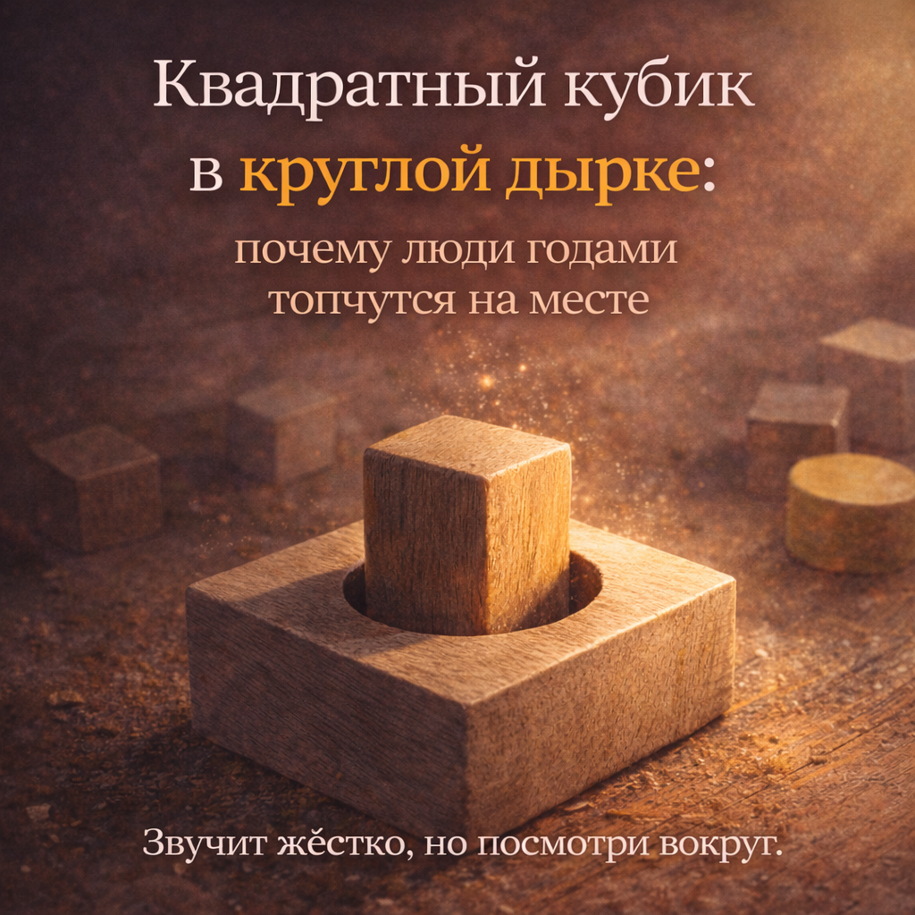 Квадратный кубик в круглой дырке: почему мы годами топчемся на месте и не становимся счастливее?