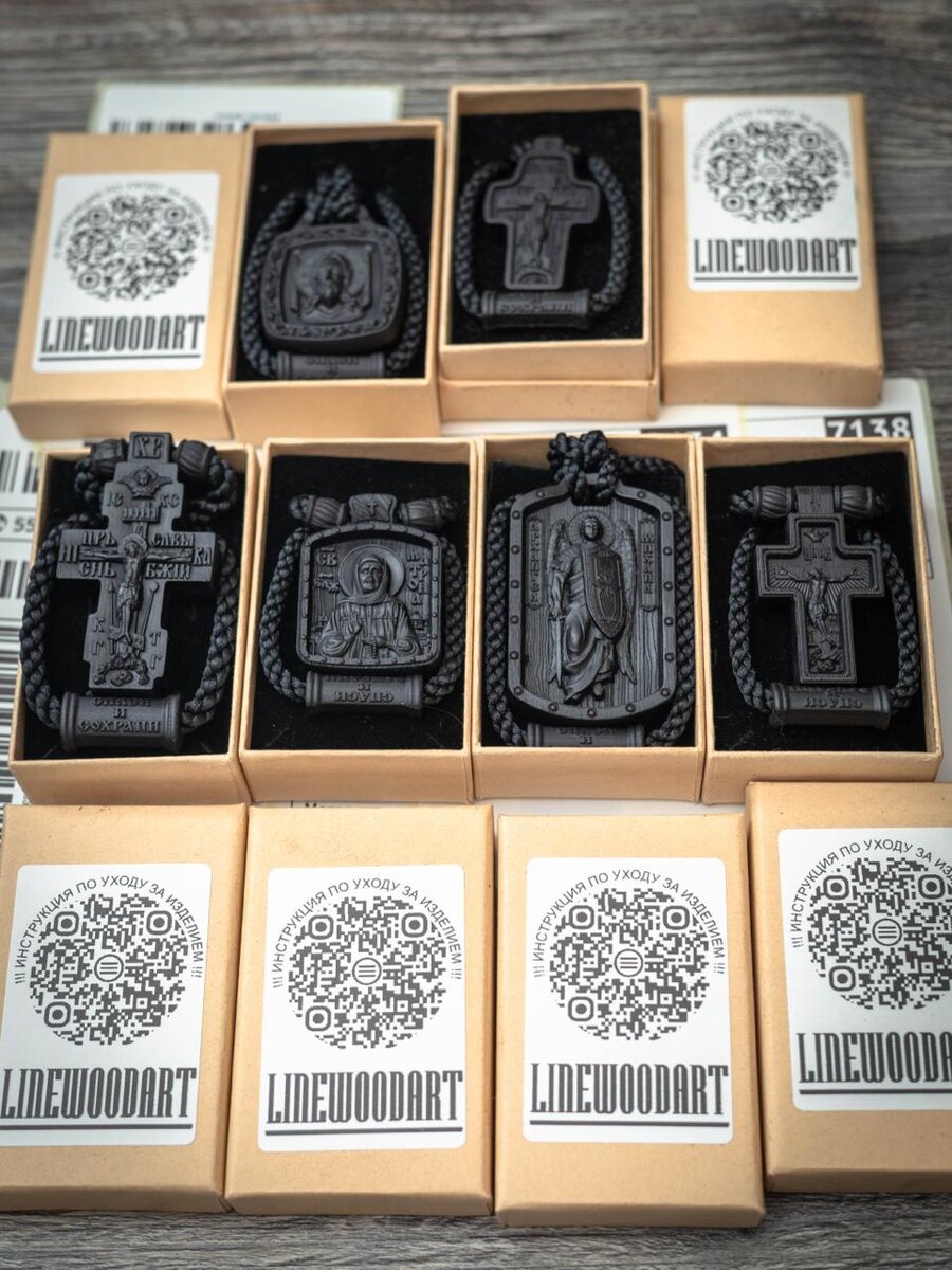 ! 🌟 Дорогие владельцы! С гордостью отправляю вам эти уникальные изделия, созданные из благородного материала — чёрного граба. Каждая подвеска, каждый крест — это не просто украшение, а произведение искусства, в котором сочетаются традиции и мастерство ручной работы. 🌳 Почему чёрный граб? Прочность и долговечность: древесина чёрного граба известна своей устойчивостью к износу. Элегантный внешний вид: глубокий чёрный цвет придаёт изделиям особый шарм и изысканность. Экологичность: натуральный материал без вредных примесей. ✨ Что в посылке? На фото вы видите коллекцию крестов и икон, искусно вырезанных из чёрного граба. Каждая деталь проработана с любовью: от мельчайших элементов орнамента до надёжного крепления. Изделия дополнены стильными шнурами — идеально для ношения на шее. 📜 Особенности: Традиционные христианские мотивы — для тех, кто ценит духовность и символизм. Компактный размер — удобно носить ежедневно. Уникальный дизайн — подчеркнёт индивидуальность владельца. 💡 Уход за из